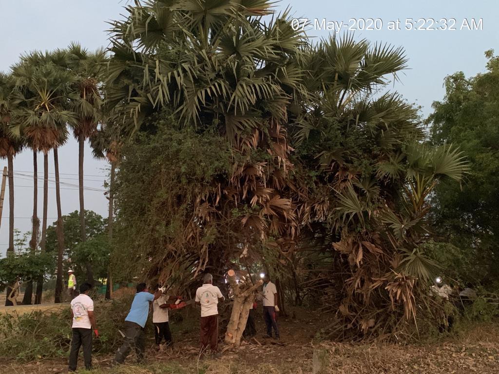 - కాస్త వెనకా ముందుగా వీళ్లతో కలిసిన గ్రామ భద్రతా దళం అంతకు ముందు 6 వ నంబరు పంట కాలువ వంతెన దగ్గరి అందమైన చుట్టుగుడిసె మీద బాగా పెరిగి, కరెంటు తీగల దాక ఊగి తగులుతున్న చెట్ల కొమ్మలను ఇంకా అందంగా కత్తిరించి, చుట్టు గుడిసెకు విద్యుద్ఘాతం ముప్పు తప్పించి వచ్చారు. నిన్నటి వ్యర్ధాల గుట్టల్ని ట్రాక్టర్ లో కెత్తి, చెత్త కేంద్రానికి చేర్చారు.