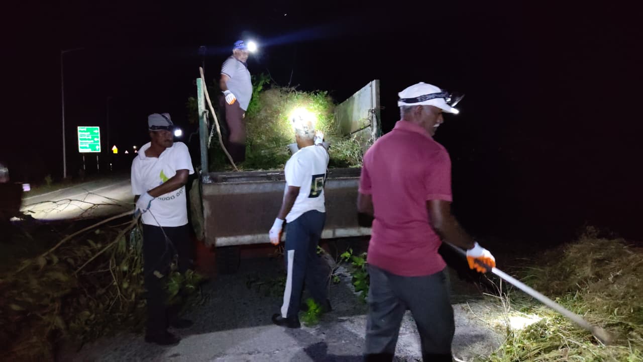 మరికొంతమంది కార్యకర్తలు నిన్న బాగుచేయగా వచ్చిన తుక్కును ట్రాక్టర్ లో లోడ్ చేసారు. ఆ ట్రాక్టర్ లో ఎత్తిన చెట్ల కొమ్మలు, కలుపు గడ్డిని రహదారి ప్రక్కన కోతకు గురైన ప్రదేశాల్లో వేసి తొక్కుతున్నారు.