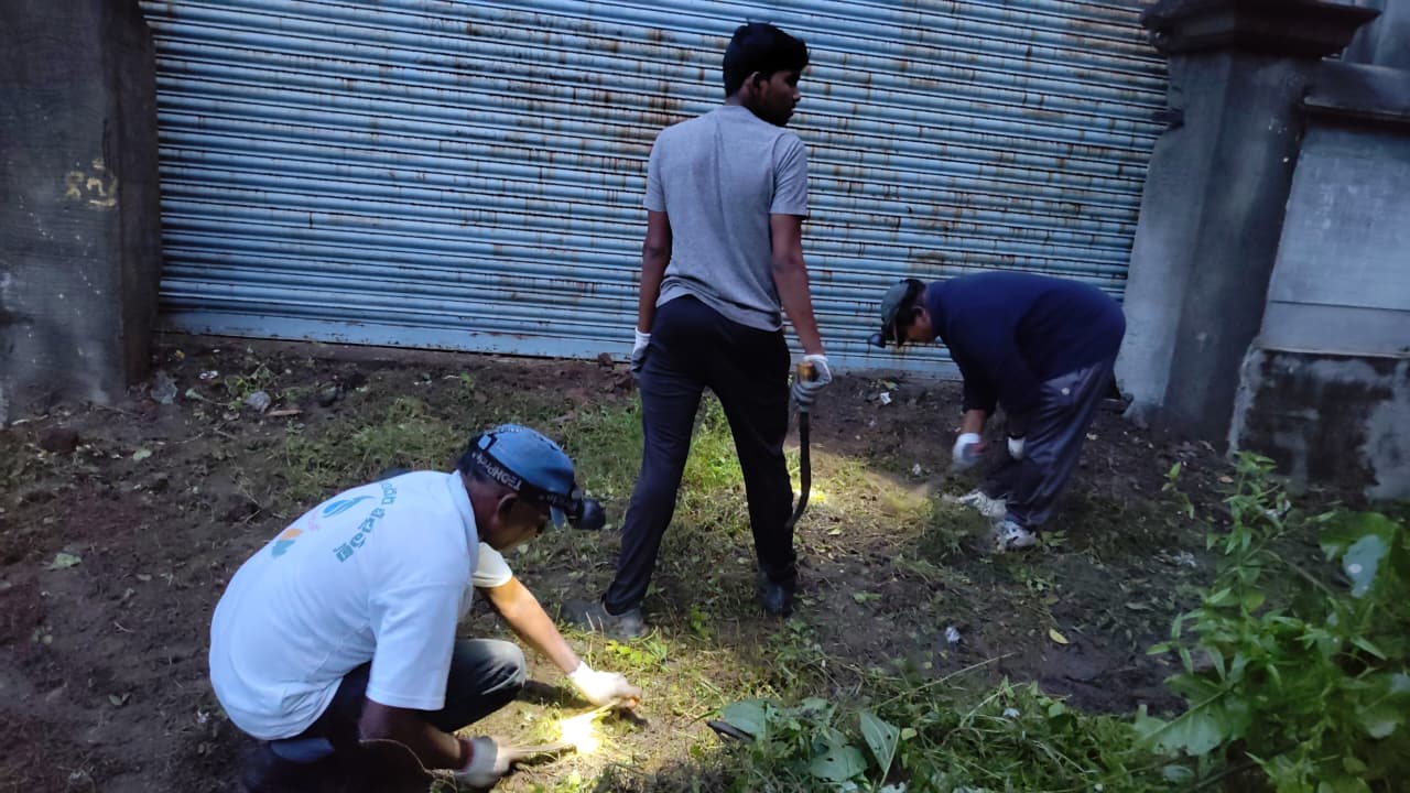 నాగాయలంక రోడ్ లోని ప్రభాకర్ రైస్ మిల్లు ప్రాంగణం ముందు ఈ రోజు వేకువ జామున 4.23 ని.లకు కార్యకర్తలు శ్రమ యజ్ఞానికి సిద్ధమైనారు. గత 4 రోజులుగా కురుస్తున్న వర్షాల వలన పని చేయుటకు పూర్తి అనుకూలత లేకపోయినప్పటికీ కార్యకర్తలు పట్టుదలతో కొంత పనిని పూర్తి చేయాలనే తపనతో పనిముట్లు చేతబట్టి ముందడుగు వేశారు.