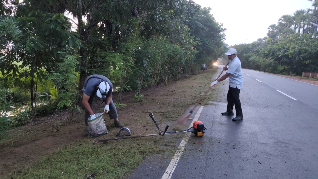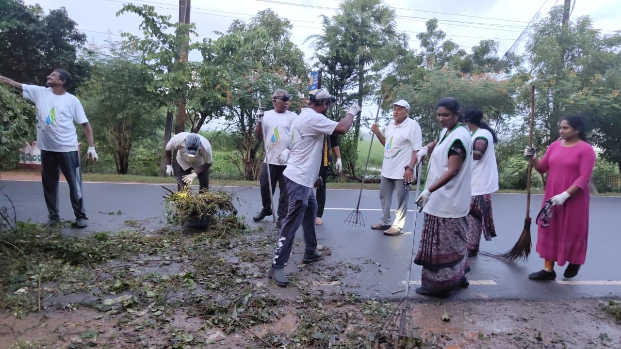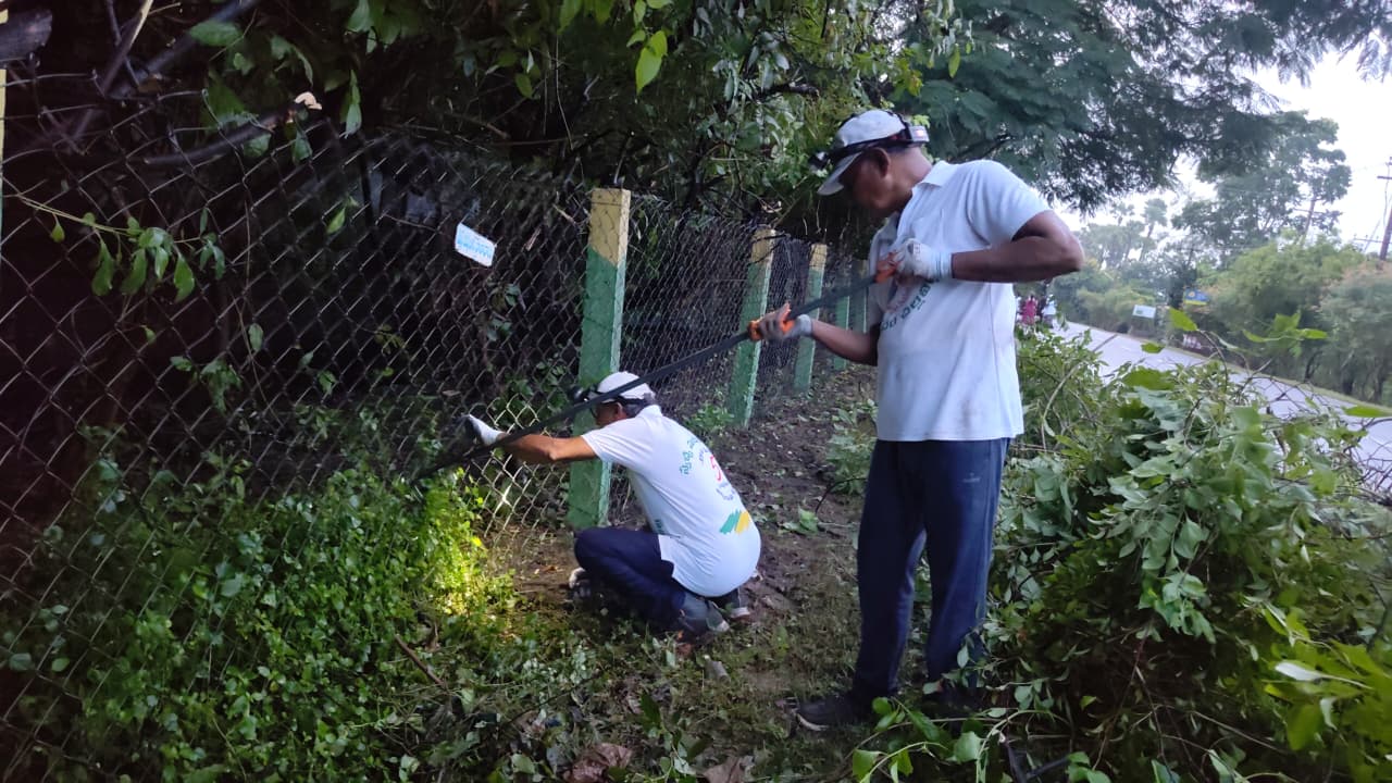 నిన్న పని చేయగా వచ్చిన కొమ్మలు, చెత్త, గడ్డి మొదలగునవి నలుగురు కార్యకర్తలు ట్రాక్టర్ లో లోడ్ చేస్తుండగా మరి కొంతమంది రైస్ మిల్ పొడవునా ఉన్న గార్డెన్ లో నుంచి చెట్లు, కంప బయటకు వచ్చి మెస్ వెలుపల అందవిహీనంగా ఉండటంతో వరుసలో అక్కడ కార్యకర్తలు కొమ్మలు కొట్టడం, బోగన్ విలియా కంపను కత్తిరించడం, గార్డెన్ వెలుపల క్రింది భాగంలో ప్రాకిన దొండ కాడ అంతా కత్తులతో కోసి ఎంతో పరిశుభ్రంగా చేశారు.