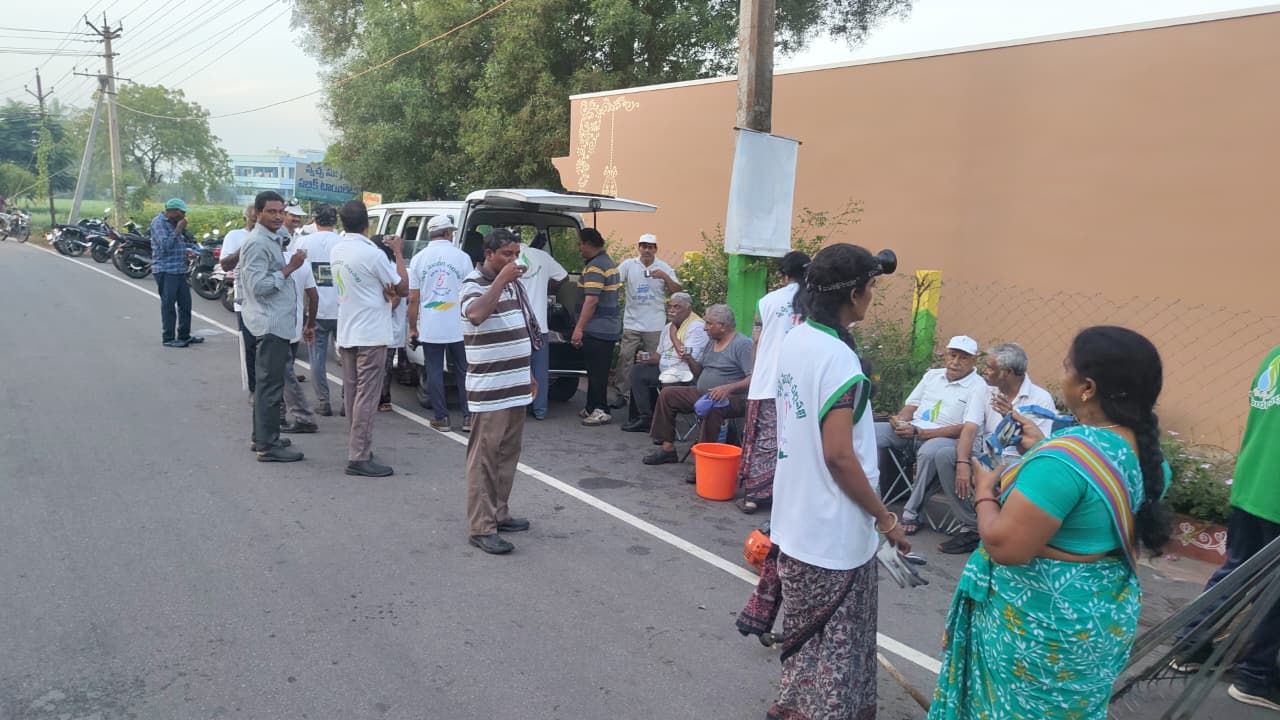ఈ రోజు నాగాయలంక రోడ్ లోని పబ్లిక్ టాయిలెట్స్ వద్ద వేకువ జాము 4.23 ని.లకు కార్యకర్తలు చేరుకున్నారు.