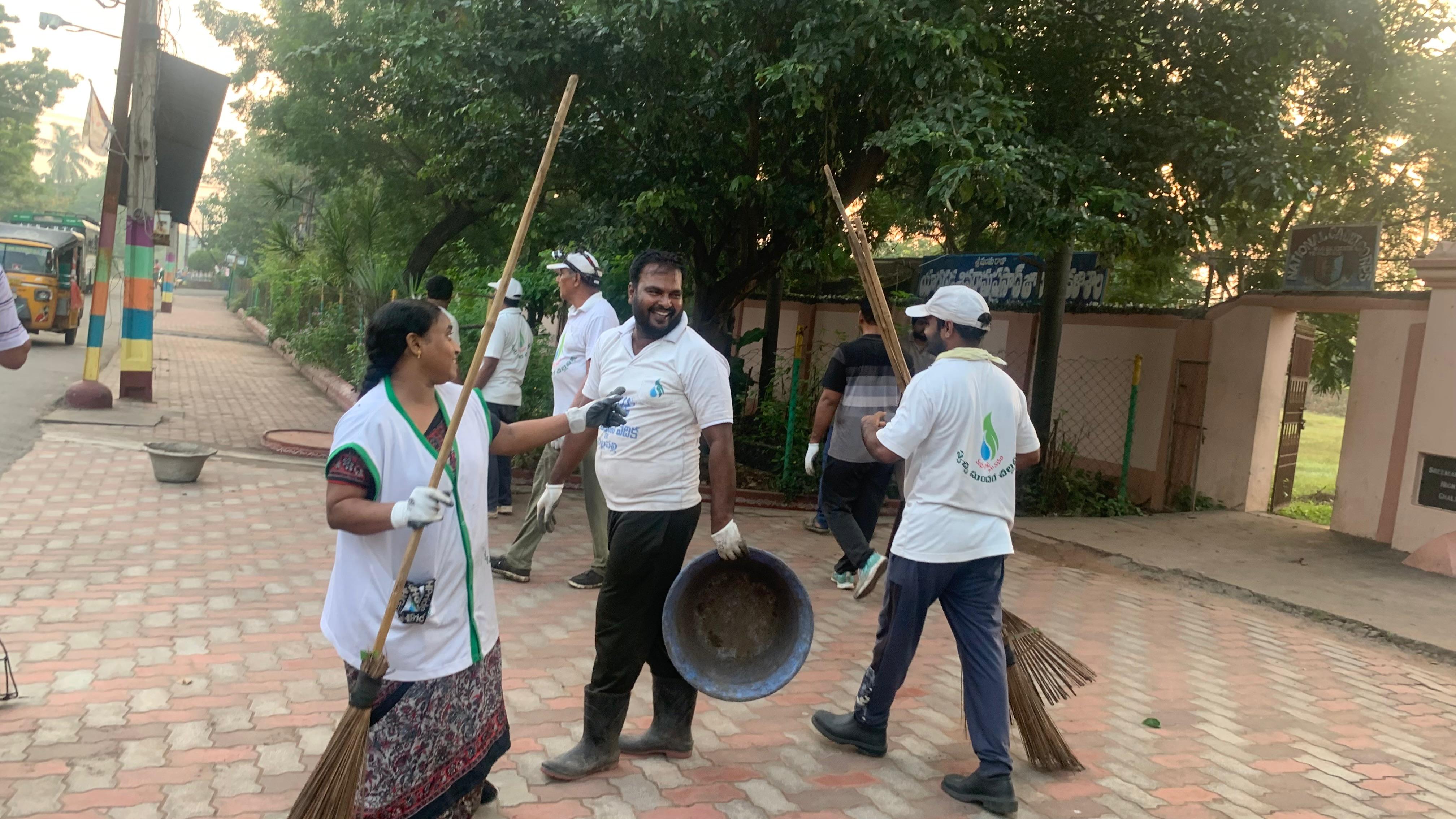 గస్తీ గది వద్ద నుండి మొదలుకొని బందరు రోడ్ పొడవునా రోడ్లపై సగభాగం నిండిన దుమ్ము, రెండు ప్రక్కలా మార్జిన్ లో వేసే చెత్త వివిధ రకాలైన వ్యాపారాలు చేసే షాపుల వారి వ్యర్ధాలు వీటన్నింటినీ శుభ్రం చేసే ప్రక్షాళన కార్యక్రమంలో భాగంగా ఈరోజు ఎక్కువమంది కార్యకర్తలు ఆదివారం వారివారి పనులను సైతం ప్రక్కన బెట్టి పాల్గొన్నారు.