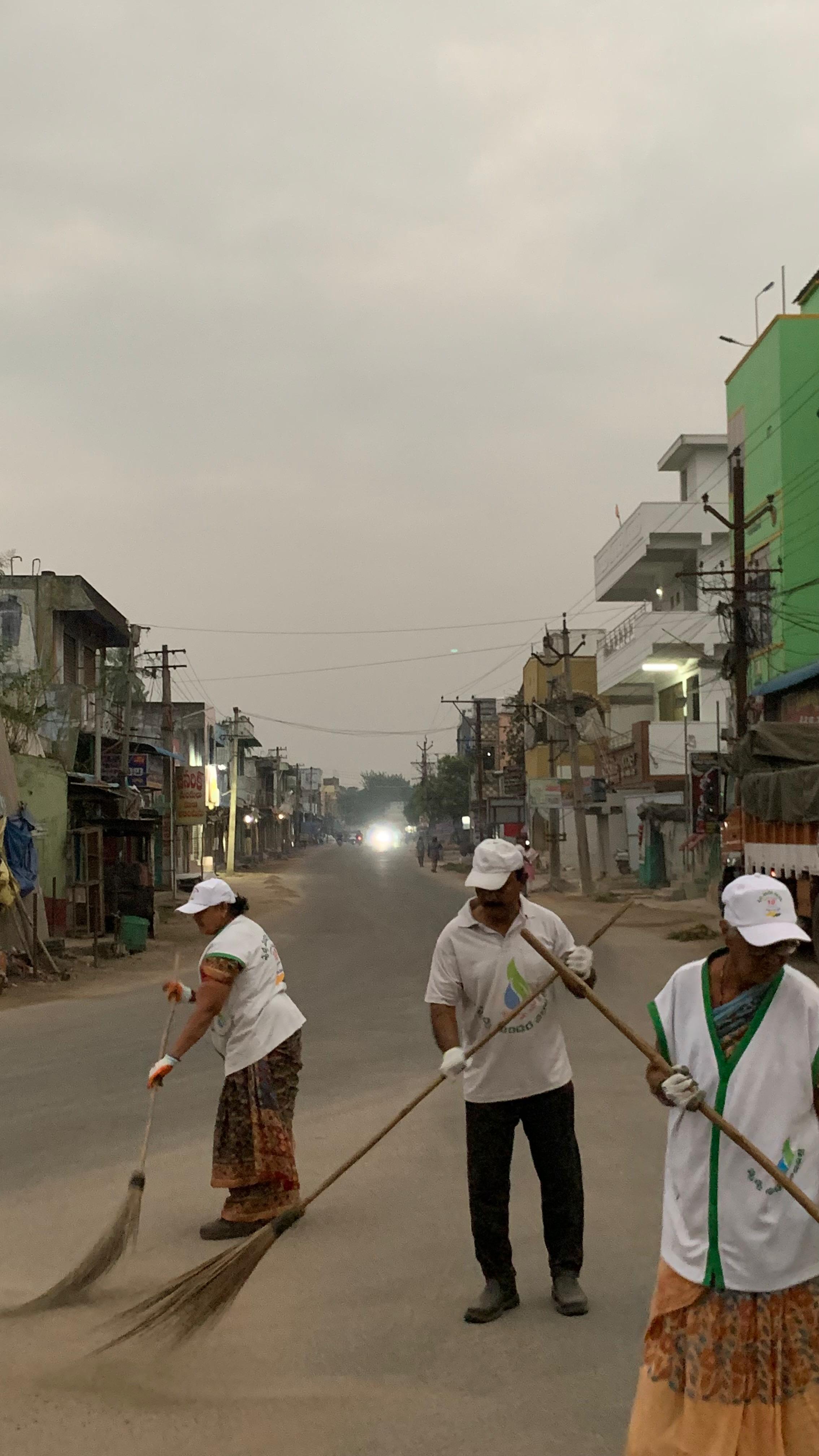 చివరిగా శుభ్ర – సుందరీకృత వీధిని సంతృప్తిగా చూసుకొని –