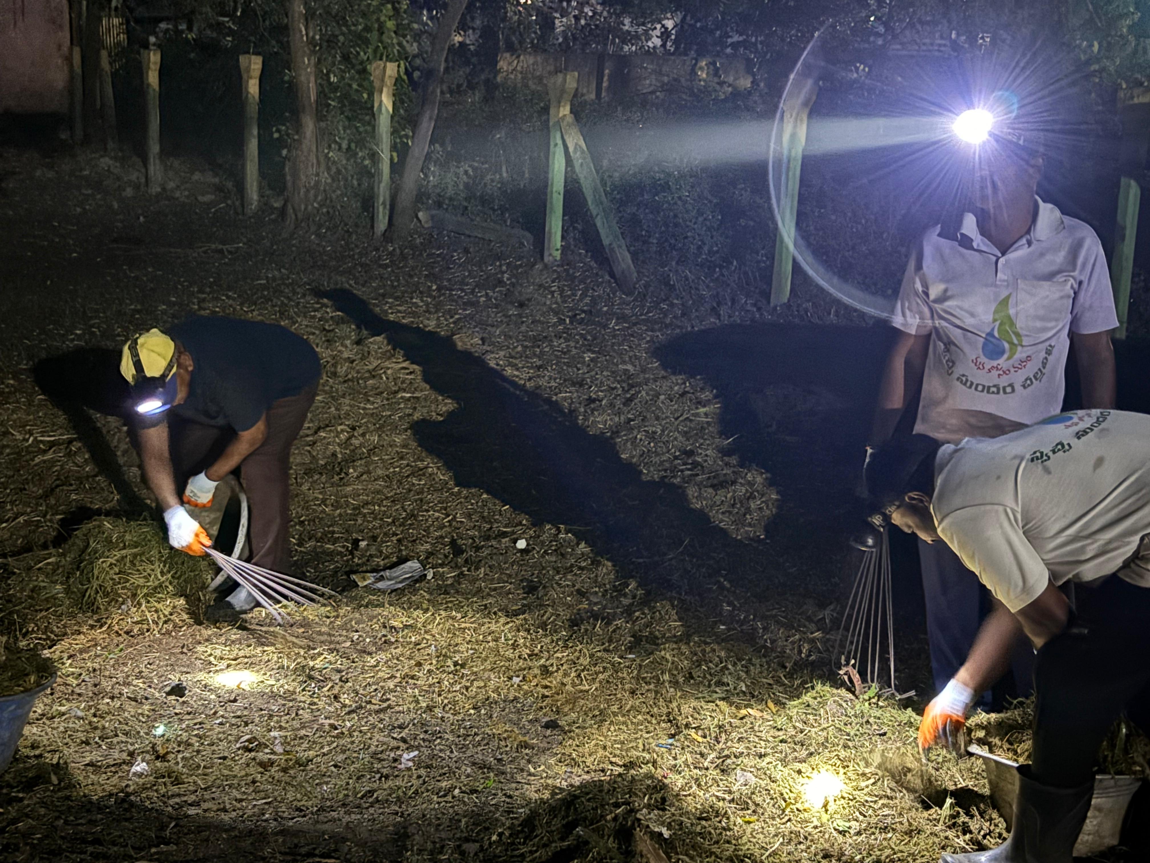 ఈ పనులు కాక 16 మంది ప్రాత కక్కూసు దొడ్ల చుట్టూ చెమ్మ ప్రాంతంలోనే గడ్డి చెక్కి, పిచ్చి చెట్లను పీకి, లేదా నరికి, వేప చెట్టు రాల్చిన ఆకుల్ని, పుల్లల్ని ఏరి, ఊడ్చి, ఆ ప్రోగుల్ని డిప్పల కెత్తి, అందంగా రూపొందించిన విషయం అసాధారణం! ప్రయాణికులు తమాషా చూశారే గాని, కార్యకర్తలకు సహకరించలేదన్నది నిజం!