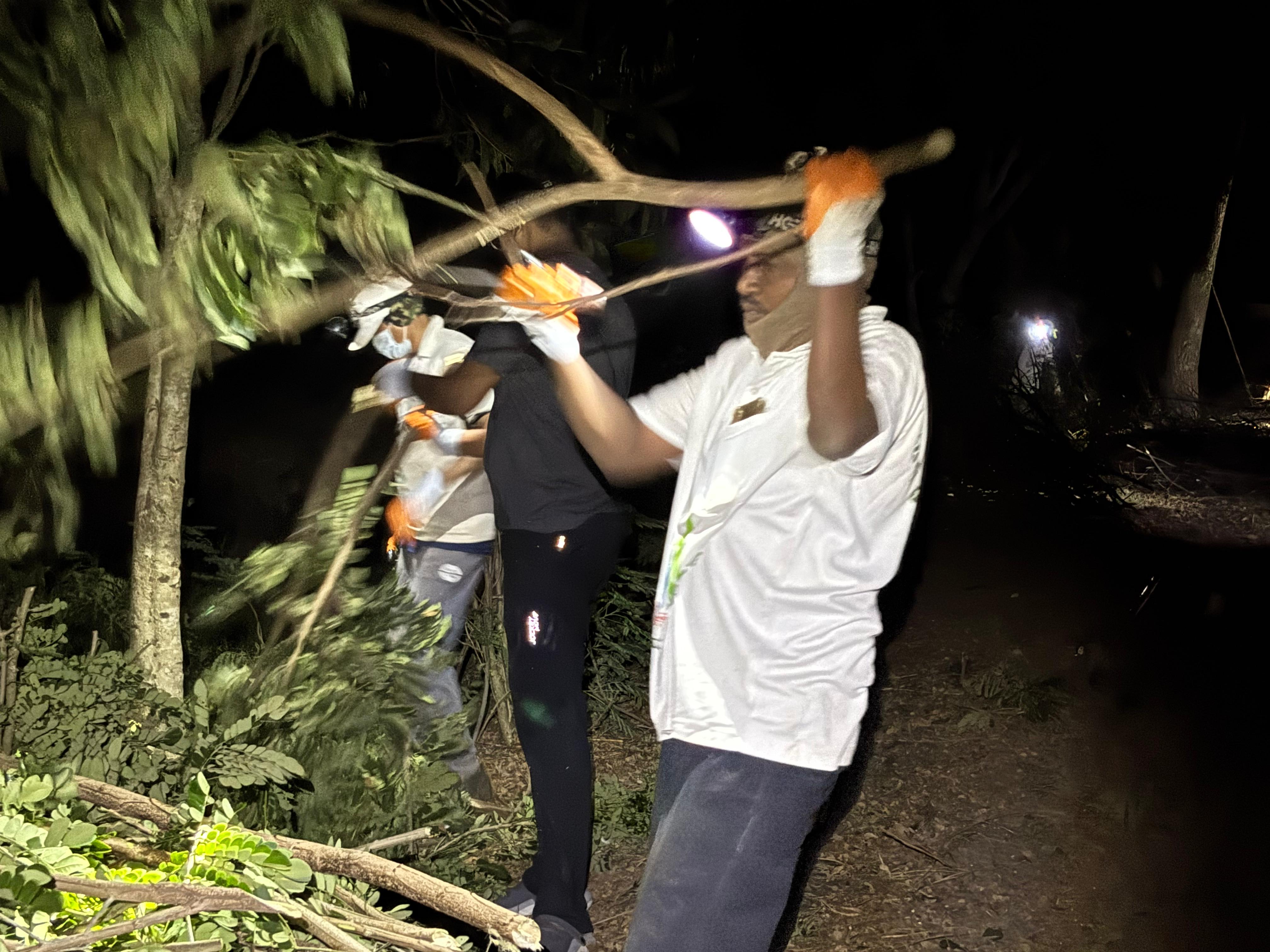 - విరిగి డ్రైన్ నీటిలో పడినానుతున్న బరువైన కొమ్మల్ని బైటకు లాగారు,