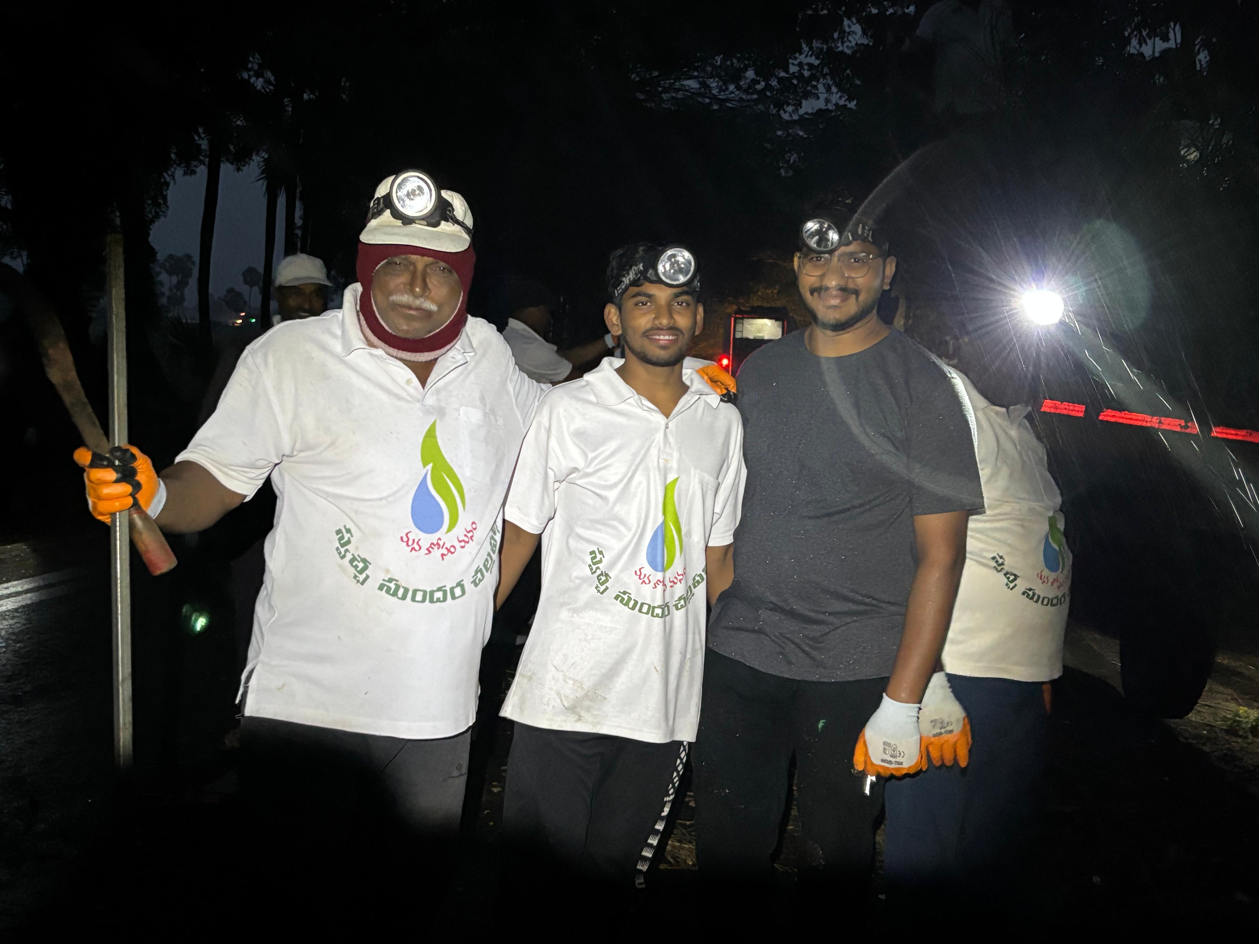 మొత్తానికి ఆ వచ్చే పోయే వాహనాల్ని తప్పుకుంటూనే జాగరూకులై మరొక 100 గజాల రహదారి పరిశుభ్రతను సాధించారు,