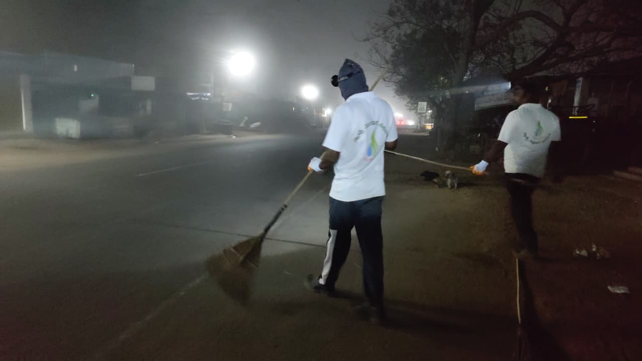 ఈ వేకువ 4.18-6.17 నడుమ RTC. సంస్థ ప్రాంగణ ప్రాంతమున వీధి శుభ్ర - సందర్భములకై శ్రమించిన కార్యకర్తలైతే 23 మందే. బస్ స్టాండు ప్రవేశమార్గంలో ఒక్క చీపురు వాలా కొంతసేపు ఊడ్చాడు గాని, మిగిలిన అందరికీ అటు నుండి పడమర అవనిగడ్డ బాటలోనే సరిపోయింది.
