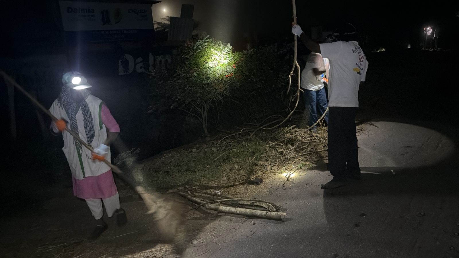 ఆగి, రహదారి పారిశుద్ధ్యం మొదలెట్టింది 16 గురే! గబగబా వచ్చి కలిసి, బాట అంచుల - డ్రైనుల అస్తవ్యస్తతలను సరిద్దింది మరొక 13 మందే! 29 మంది పట్టుదలతో – 2 గంటల కఠిన శ్రమతో అందంగా మారినది సాగర్ ఆక్వా కర్మాగారం నుండి మేకలడొంక దిశగా మరొక 120 గజాల బాటే!