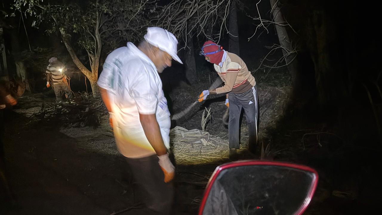 మంచు వెనకాడి, అచ్చటి దట్టమైన చెట్ల నడుమ జాలువారుతున్న వెన్నెల వెలుగులో జరుగుతున్న రహదారి సుందరీకరణ ప్రయత్నాన్ని ఏ భావుకులు చూసినా సహృదయస్పందన తప్పదు!