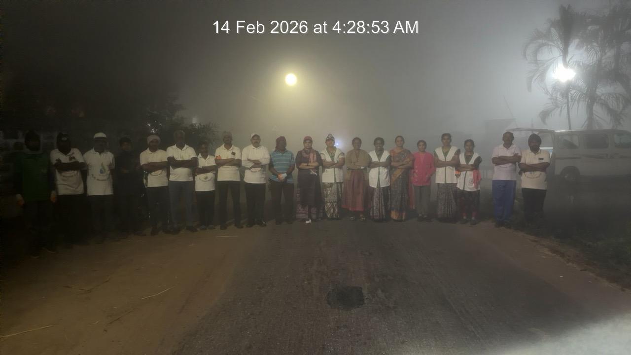 శనివారం (14-2-26) నాటి వేకువ సమయాన, ఆ ఉభయ శివరామపురాల పరిశుభ్ర సుందరీకర్తలు 44 మందిలో సగం మంది తీవ్రమగు చలిలో నిర్ణీత కాలానికి ముందే 1 వ శివరావుపురంలో మంచు వల్ల సరిగా కనిపించకున్నారు చూశారా?