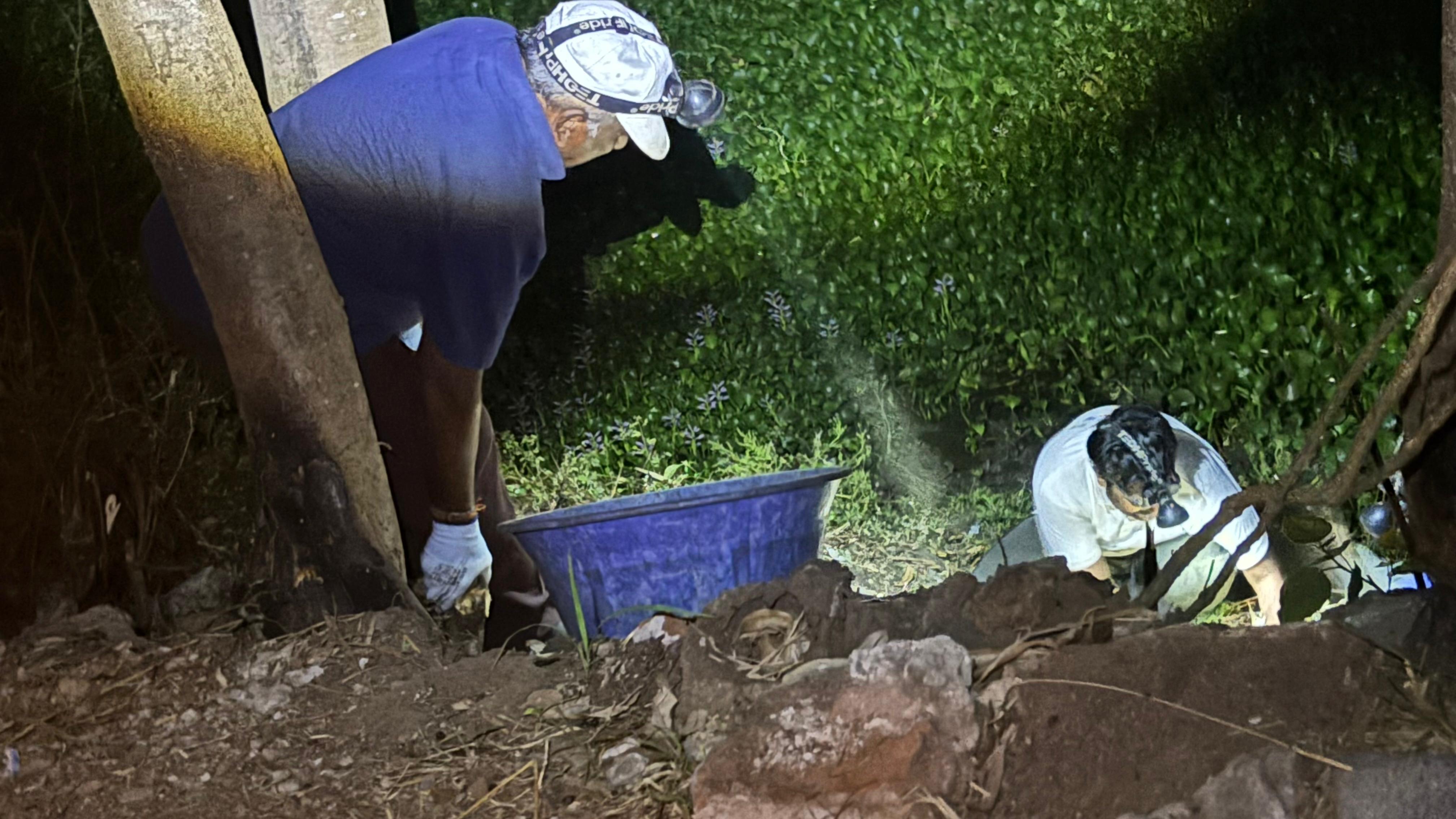 నిన్నా, మొన్నా తాము శ్రమించిన చోటనే ఆరేడుగురికి పని దొరికింది. మురుగు కాల్వ లోతట్టు ఏటవాలు చోటైనందున ఒక 60 ఏళ్లు దాటిన కార్యకర్త కాలు జారాడు కూడ!
