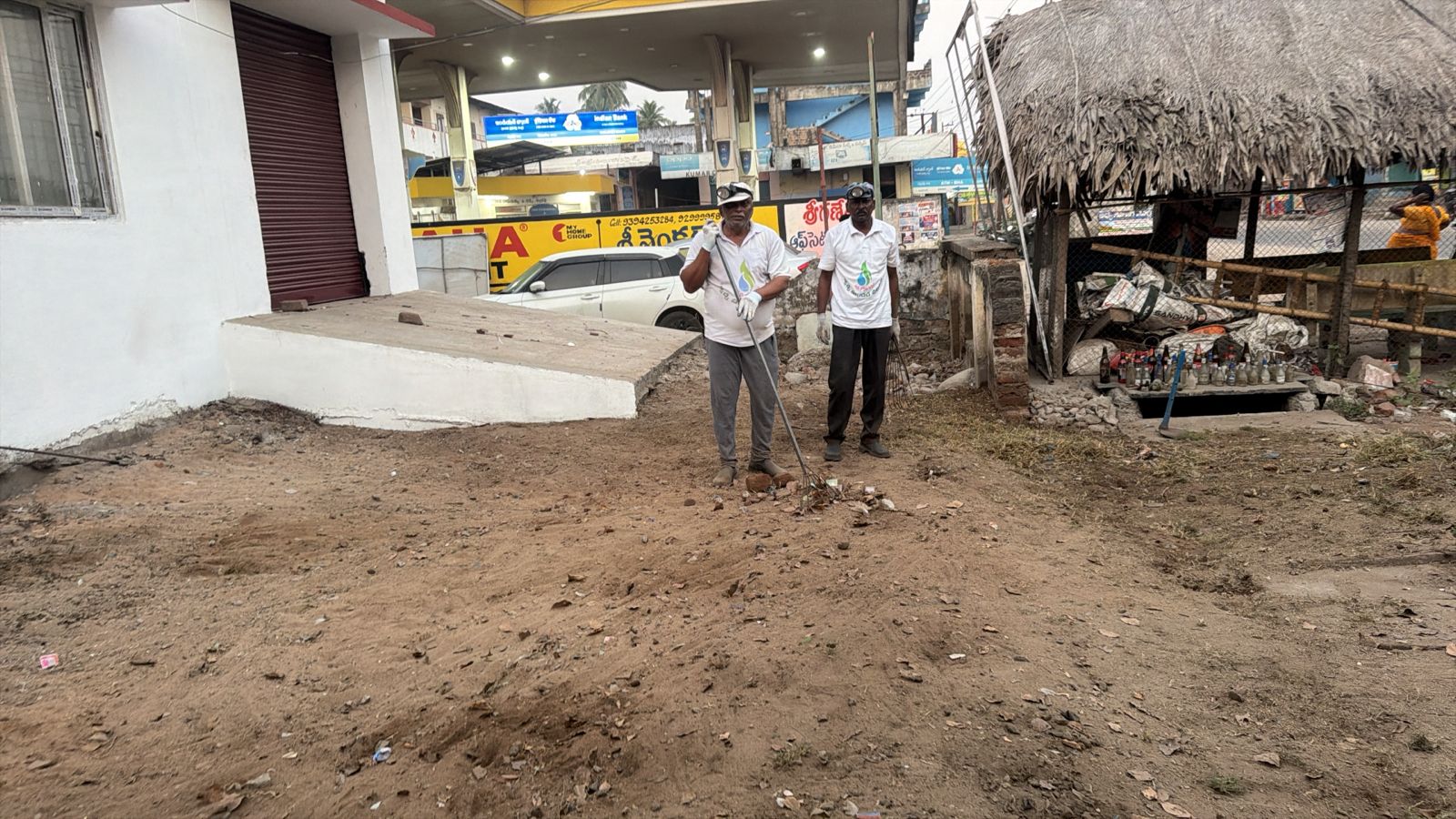 ఇక అక్కడి నుండి చెప్పేదేముంది - పళ్ల, కొబ్బరి దుకాణాల, ఉభయ దేవాలయాల, ముఖ్యంగా ATM కేంద్రాలన్నిటినీ - ఊడవడమూ, చిన్న కార్ల స్టాండు వెనక 2 గుట్టల పిచ్చి చెట్ల పని పట్టడమూ, ఇసుకా - దుమ్ముల్ని ట్రాక్టరులో నింపుకోవడమూ, ఇద్దరేమో బంకు ప్రక్క సందును శుభ్రపరచడమూ.... షరామామూలుగానే జరిగిపోయినవి.