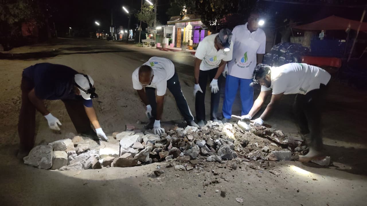 మలుపు వద్ద గాయత్రి బ్రాహ్మణ కర్మల సత్రము వద్దే అసలైన చెత్త - చెదారపు డంపు! అక్కడ డజను మందికి గంటకు పైగా పని! ఫ్లెక్సీల మాటున కూడ రకరకాల కాలుష్యాలు! గోతాం నిండుగా సింగిల్ యూజ్ ప్లాస్టిక్కులూ, అరగోతాం గాజు వస్తువులూ అక్కడే దొరికాయి!