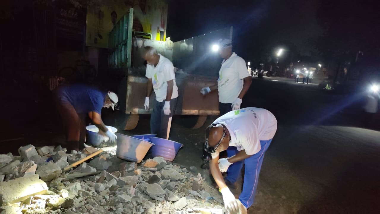 ఐతే, ఇందులో కొంతభాగం నిన్న శుభ్రపడినదే – కానిఈ 24 గంటల్లో అక్కడ చేరిన కొంత చెత్త, దుమ్మూ, నిన్న లోడు చేయక వదిలిన ఇసుక - దుమ్ము గుట్టల వల్ల ఈ పూట కూడ 10 మందికి బాట ఉత్తర మలుపు దాక పనులు దొరికాయి!