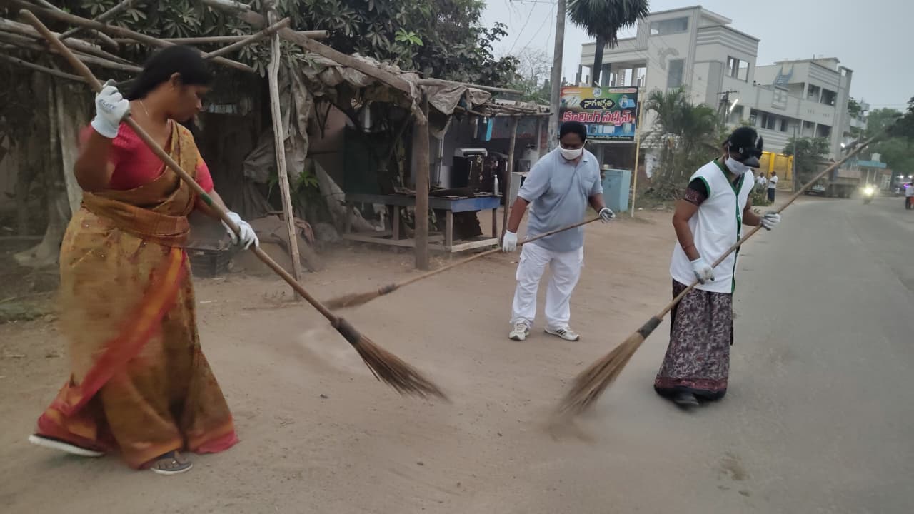 మిగిలిన వారు బెజవాడ బాటలో అగ్రహారం 4 వ లైను దాక ఊడ్చారు. మొక్కల్ని ట్రిమ్ చేశారు, గడ్డీ, పిచ్చి మొక్కల్ని దునుమాడారు.