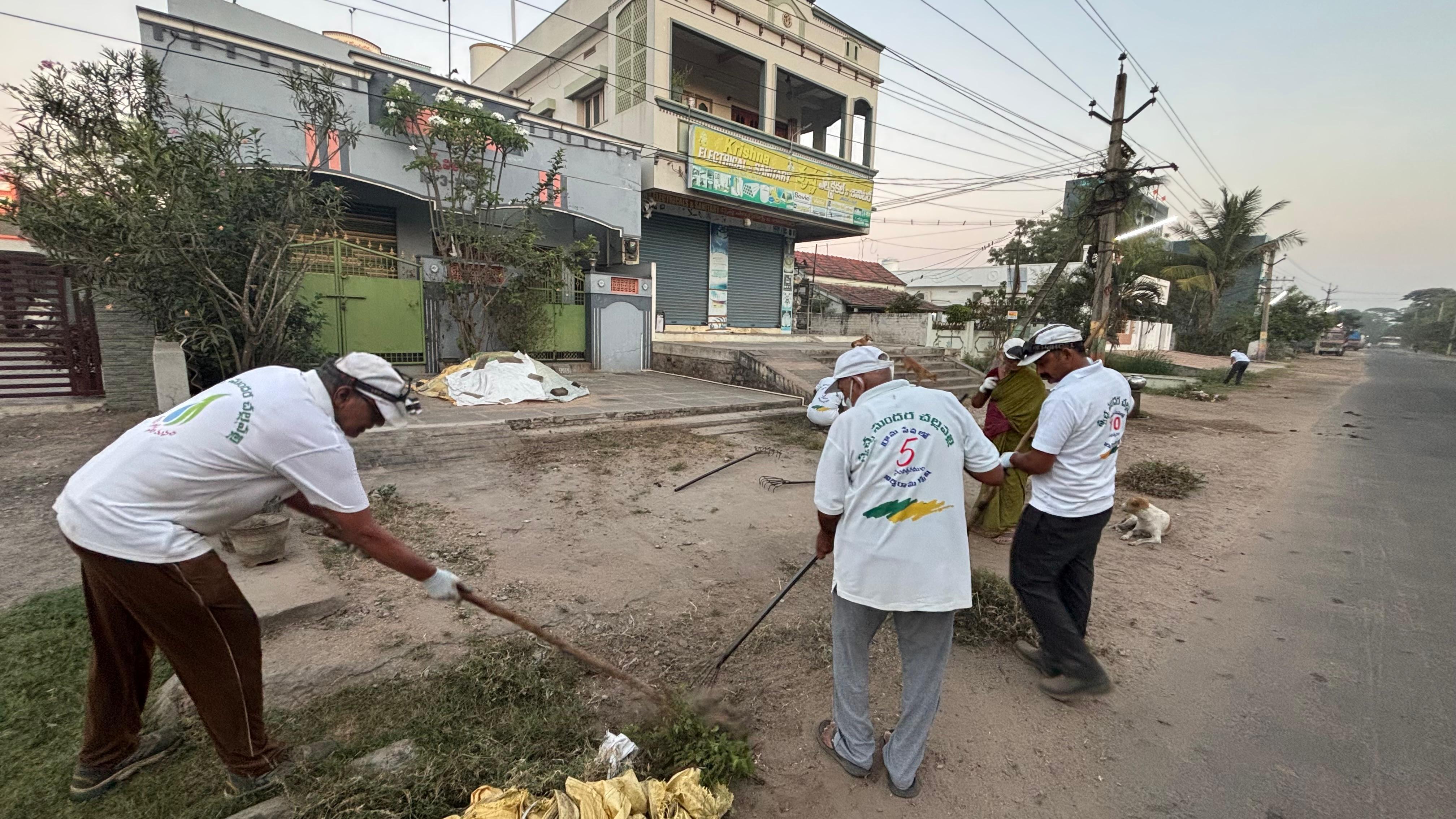 4) ఐదుగురు చీపుళ్ళతో బంకు నుండి వికాస కేంద్రం దాక ఊడుస్తునే ఉన్నారు.