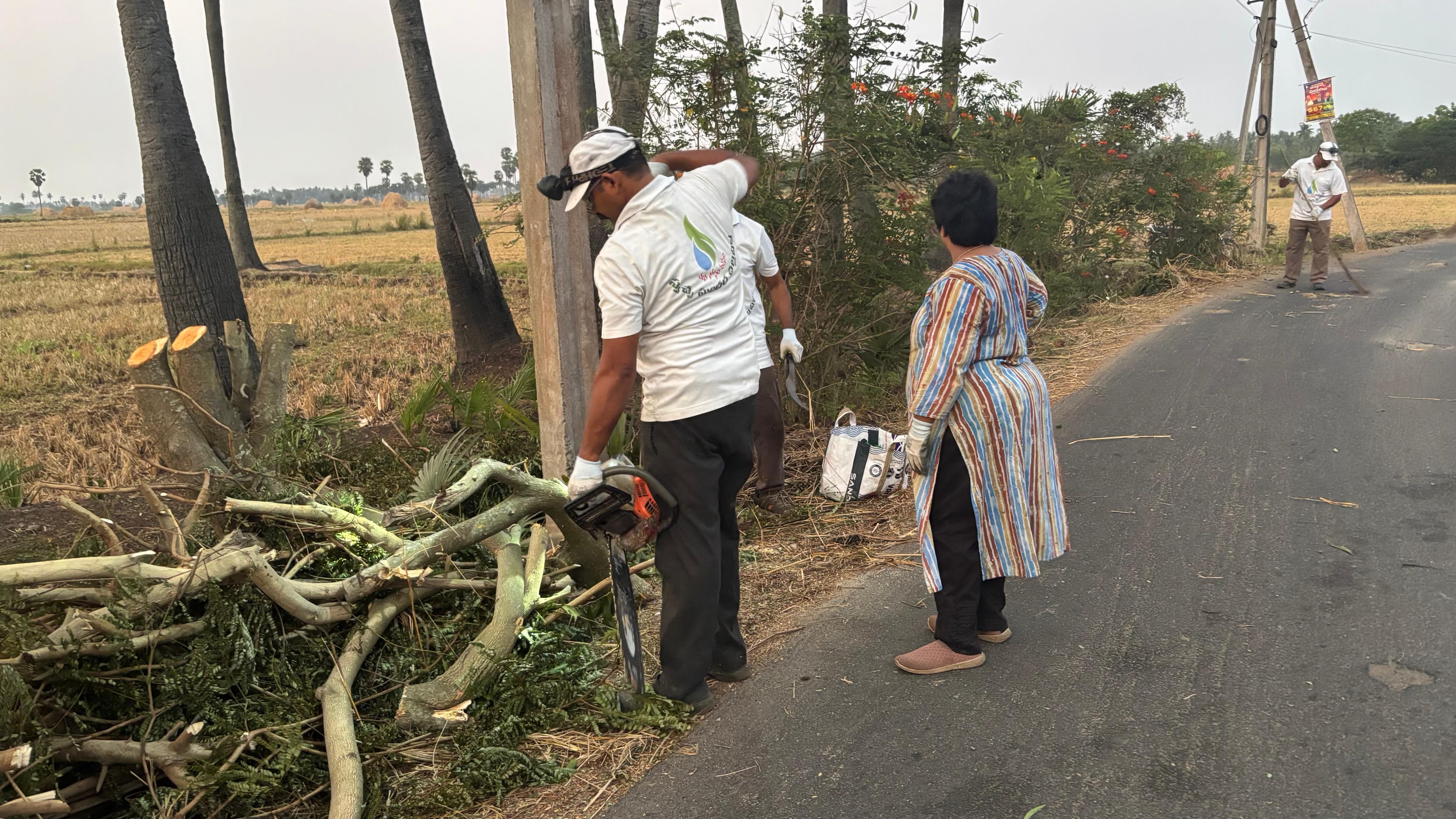 సదరు వీధి అస్తవ్యస్తతకు కారణం గ్రామ పంచాయితీకి గానీ, స్వచ్ఛ కార్యకర్తలకు గానీ మాట మాత్రం చెప్పకుండా విద్యుత్ కార్మికులు చెట్లను నరికి, చిందరవందరగా వదిలివేయడమే!