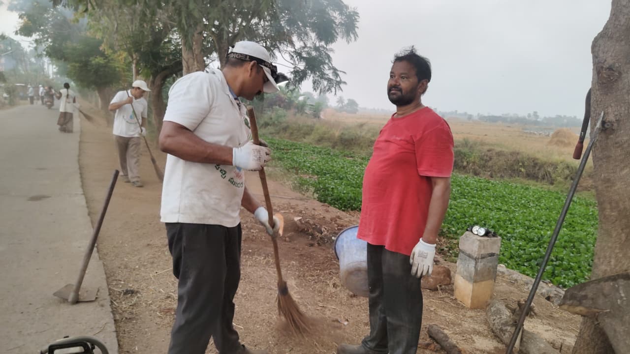 ఊళ్ల వీధులతోబాటు ప్రక్క ఊరి రహదారి శుభ్ర - సుందరీకరణ యజ్ఞం ఈ మంగళవారం (14-4-26) ఆగలేదు!
