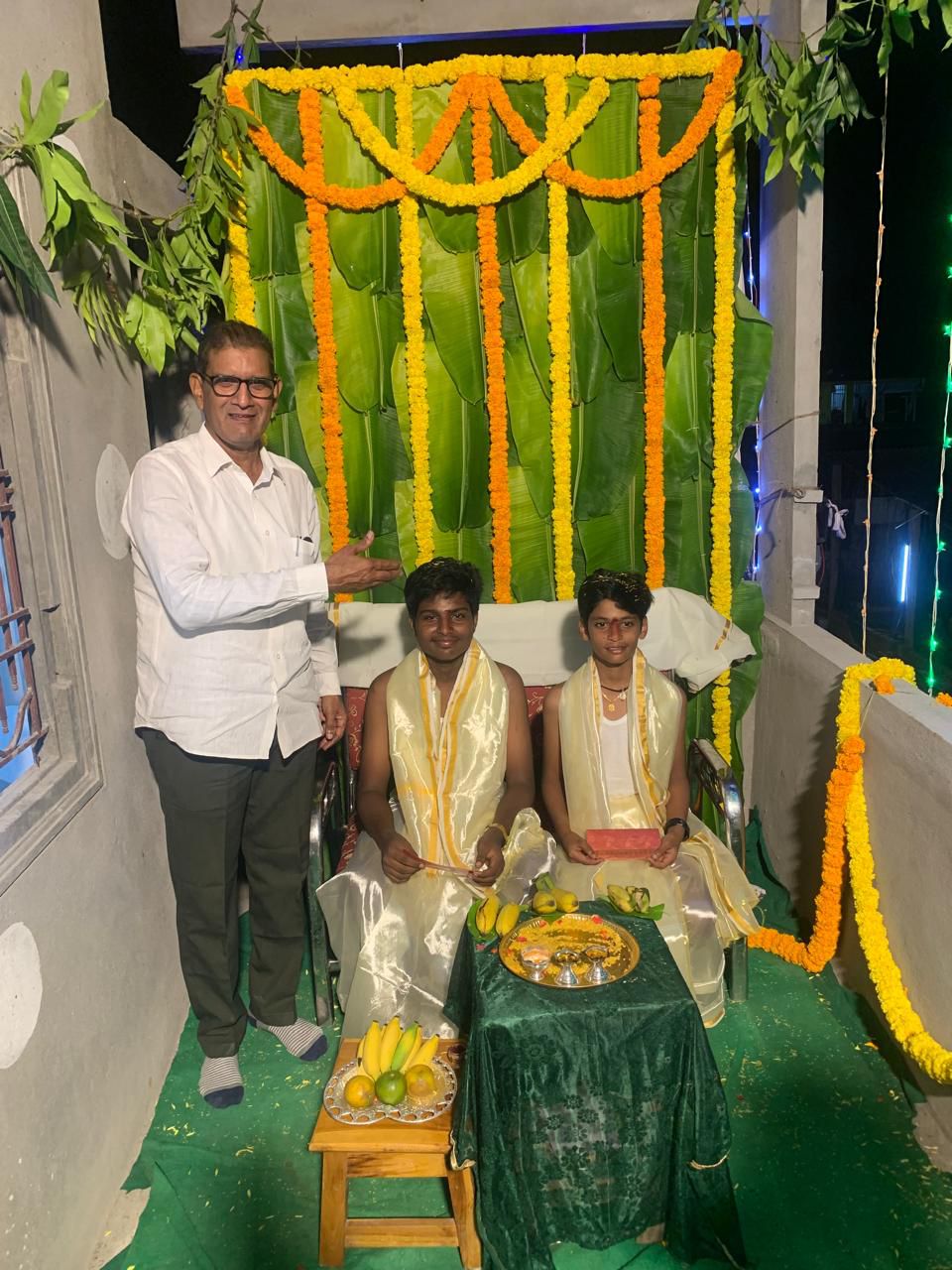 నిన్న చల్లపల్లినారాయణరావు నగర్ లో శ్రీ గంధం నాగ బృందావన్ కుమార్ - శ్రీమతి లక్ష్మణ ల కుమారులు తర్షిత్, జశ్వంత్ ల పంచకట్ల వేడుకను పూర్తి హరిత వేడుకగా నిర్వహించారు.