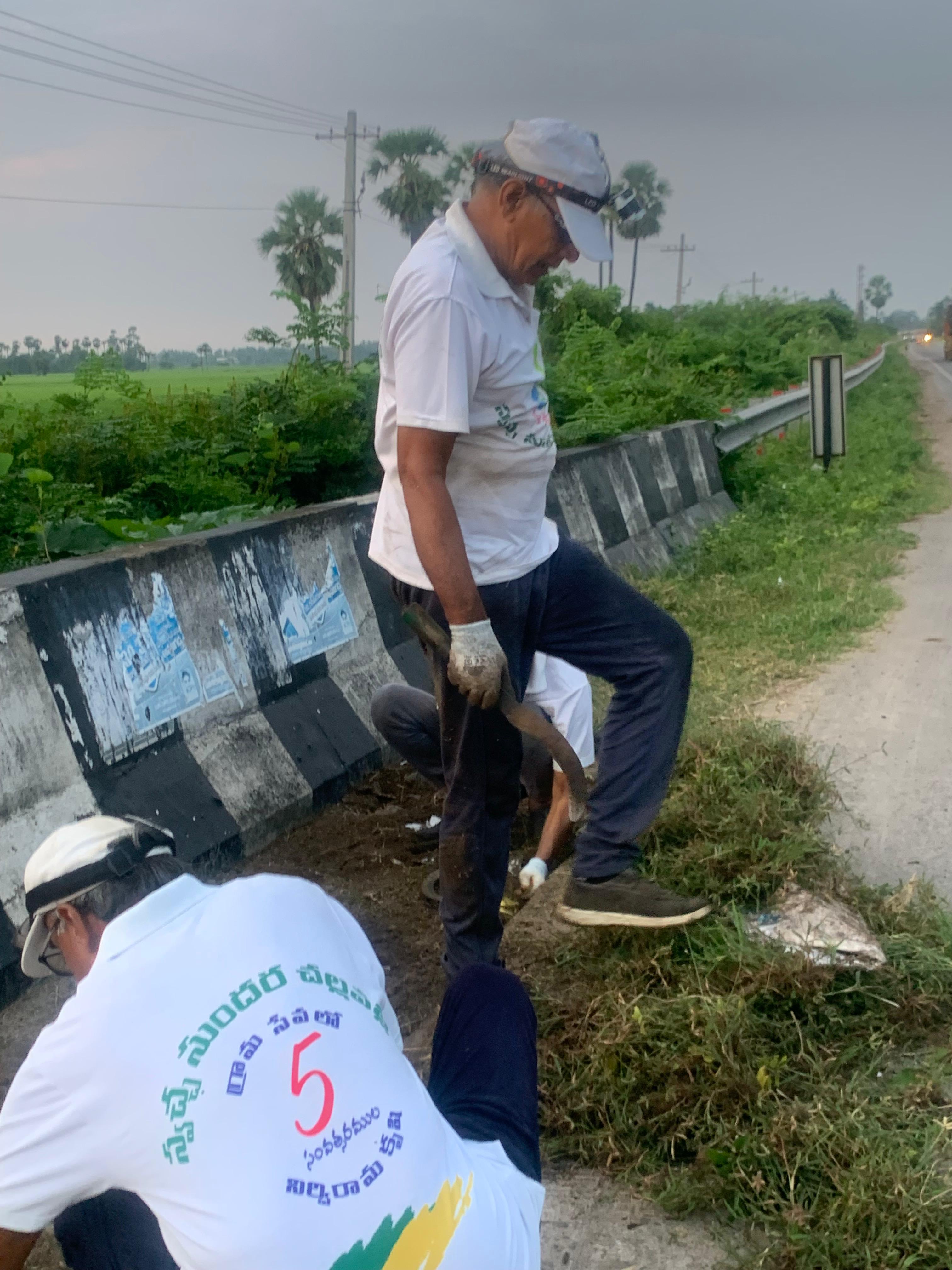NH 216 లోని కాసానగర్ జంక్షన్ చెక్ పోస్ట్ వద్ద 4:19 నిమిషాలకు13 కార్యకర్తలకు కలుసుకుని మొదటి గ్రూపు ఫోటో దిగి ట్రాక్టర్ లో ఉన్న నచ్చిన పనిముట్లు తీసుకుని శ్రమదానానికి సిద్ధమయ్యారు.