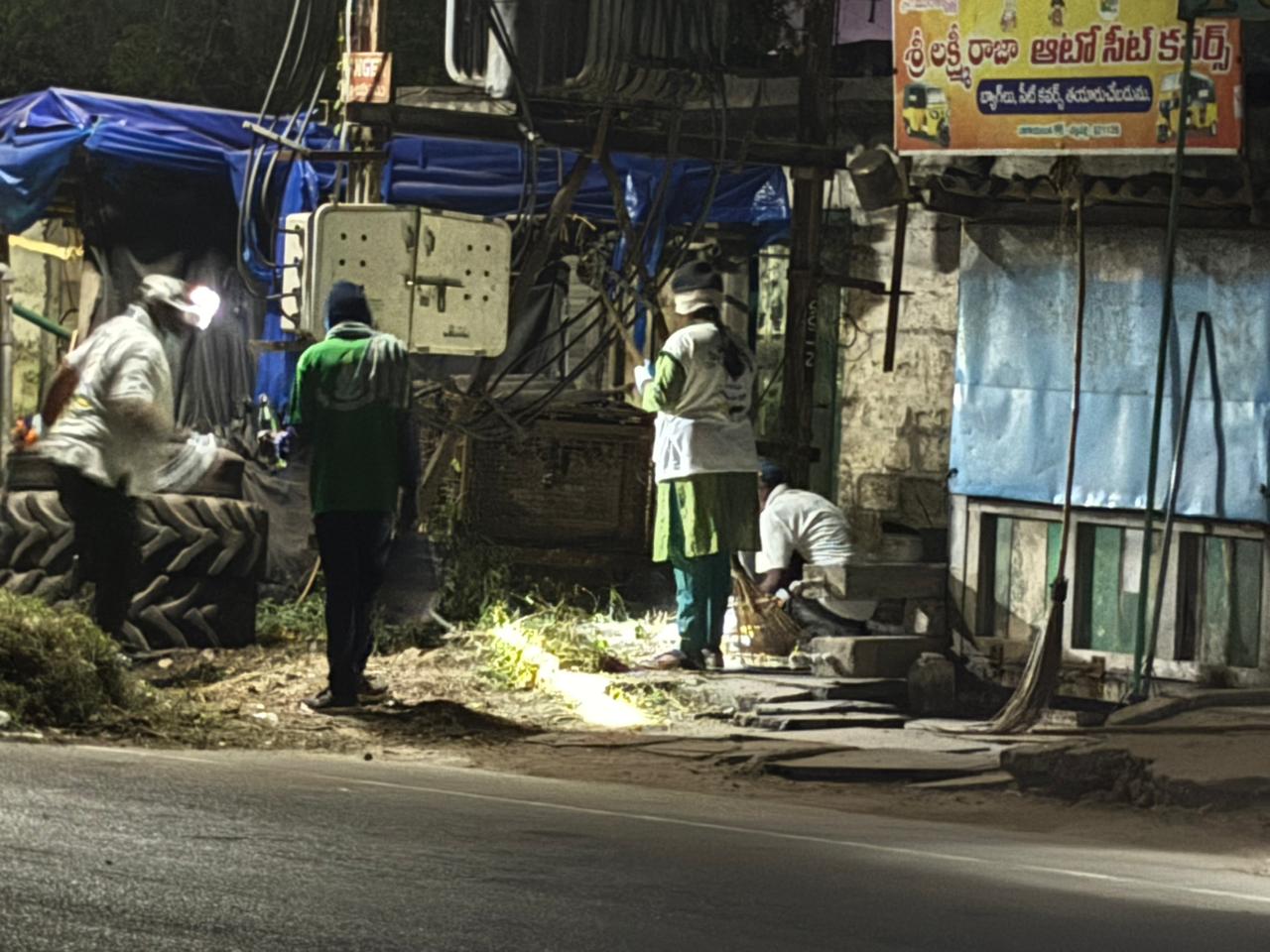 - ఈ వేకువ 12 మంది మహిళలతో సహా 45 మంది కార్యకర్తలు ఏ 3.30 కో మేల్కొని, చలిని ధిక్కరించి, తమ నివాసాలకు 3 కి.మీ. దూరంలోని పడమటి వీధికొచ్చి, 2 గంటలు నానా మురికి పనులు చేశారా లేదా?