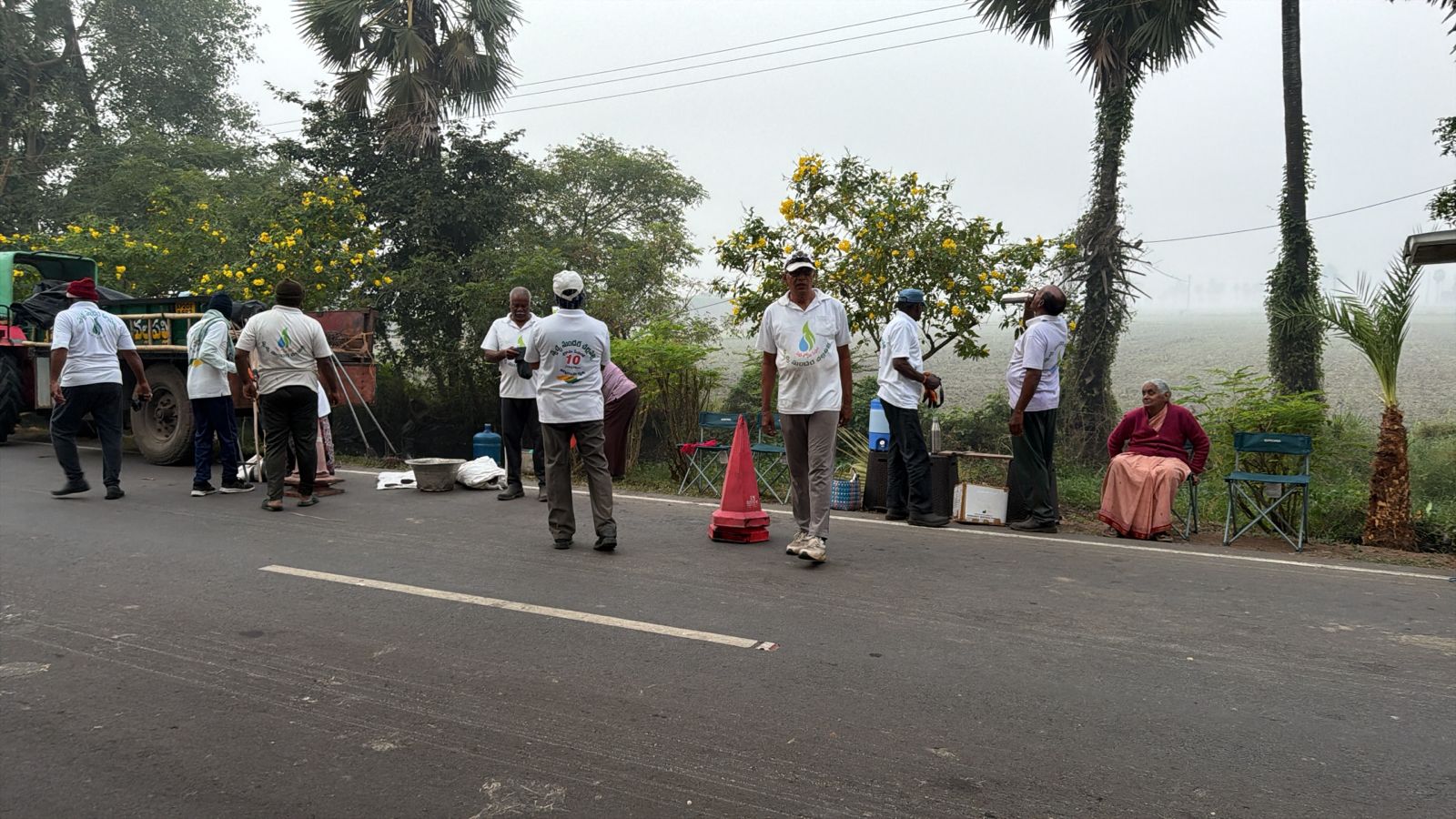 నిన్నటి, నేటి చెట్లు సుందరీకరణతోనూ, కూర్చొనీ వంగొనీ పీకిన పిచ్చి చెట్లూ, గడ్డీ, ఈత మట్టలూ, ఎండు పుల్లలూ, చిక్కుపడిన తాటాకులూ టాక్టరుపైన త్రొక్కిన, డిప్పలందించిన దృశ్యం పరిశీలిస్తే-ఎవరికైనా ఈ రహదారి సుందరీకర్తలకు సహకరించాలనిపిస్తుంది!