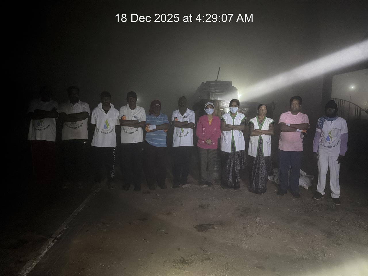 ఈ వేకువ కురిసింది మంచో - వర్షమో కాని – రహదారి చెట్ల నుండి టపటపా మంచుబొట్లే, 6.20 తర్వాత చూస్తే తడిసిన రోడ్లే, గంటన్నరకు పైగా అమరిన శ్రమదానంతో –