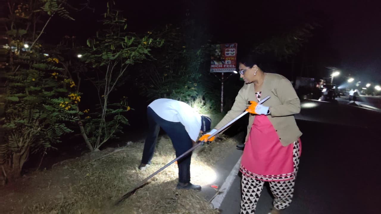 2. పాగోలు వైపుగా మురుగు కాల్వ అంచుల గడ్డినీ, నానావిధ కశ్మలాలనూ తొలగించే పనీ,