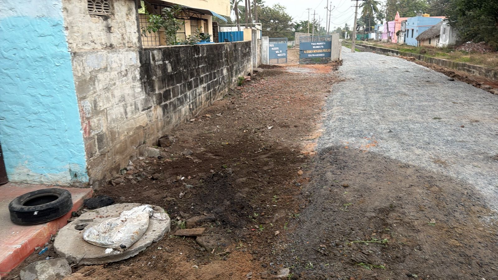ఊళ్లోని అందమైన ఈ వీధి భాగంలో గోనె సంచీడు ప్లాస్టిక్-గాజు సీసాలు దొరకలేదా? పైగా-పాఠశాల ముందున్న డ్రైన్ లో ఇంకొన్ని ప్లాస్టిక్ చెత్తలు మిగిలి, స్వచ్ఛ-సుందరోద్యమాన్ని వెక్కిరించడం లేదా?