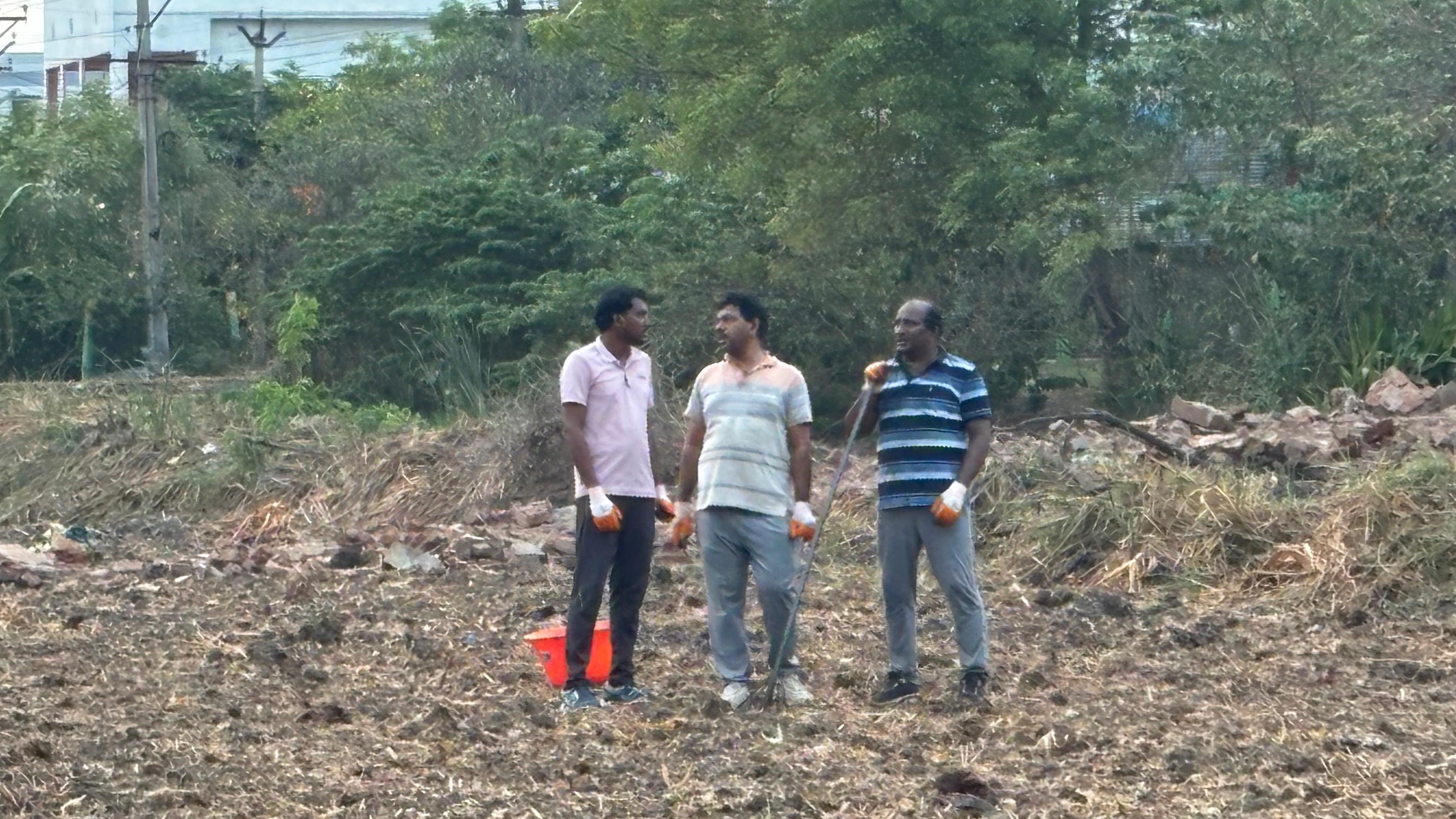 ఊరి రోడ్లు ఊడ్చుట, చుట్టూ రహదార్ల ఉద్యాన నిర్వహణ వంటి పనులు చేసుకుపోతున్న కార్యకర్తల రొటీన్ వర్క్ లో ఇదొక మార్పు! మట్టి గడ్డల్లో కాళ్లు బెసగడం వంటి, ముళ్లు కాళ్ళకో చేతులకో గ్రుచ్చుకొనడం లాంటివి జరగలేదు. కార్యకర్తలు బాగుచేసిన స్థలం – ఒక యకరం కూడ ఉండదు.
