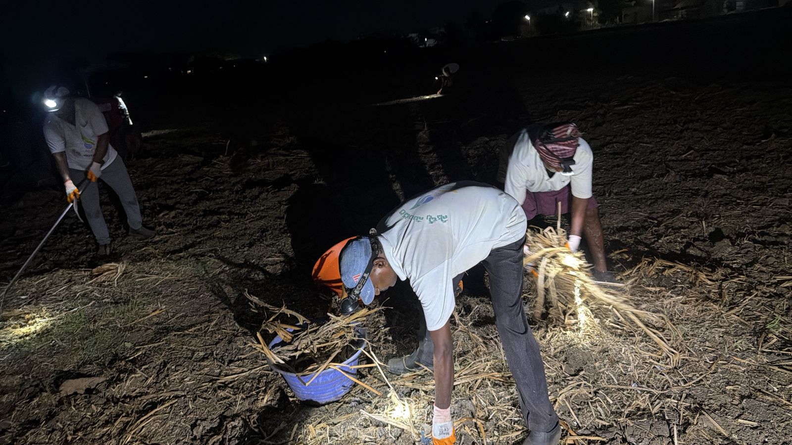 అది రెవిన్యూ కార్యాలయాల, పాలకేంద్ర ప్రాంతాన 5 ఎకరాల ఖాళీలో జరిగింది; దాని ప్రారంభ - ముగింపు వేళలు ఎప్పటిలాగే వేకువ 4.19 - 6.09; అందలి మట్టి పెళ్లల మధ్య జాగ్రత్తగా పనిచేసిన కార్యకర్తలు 32 మంది!