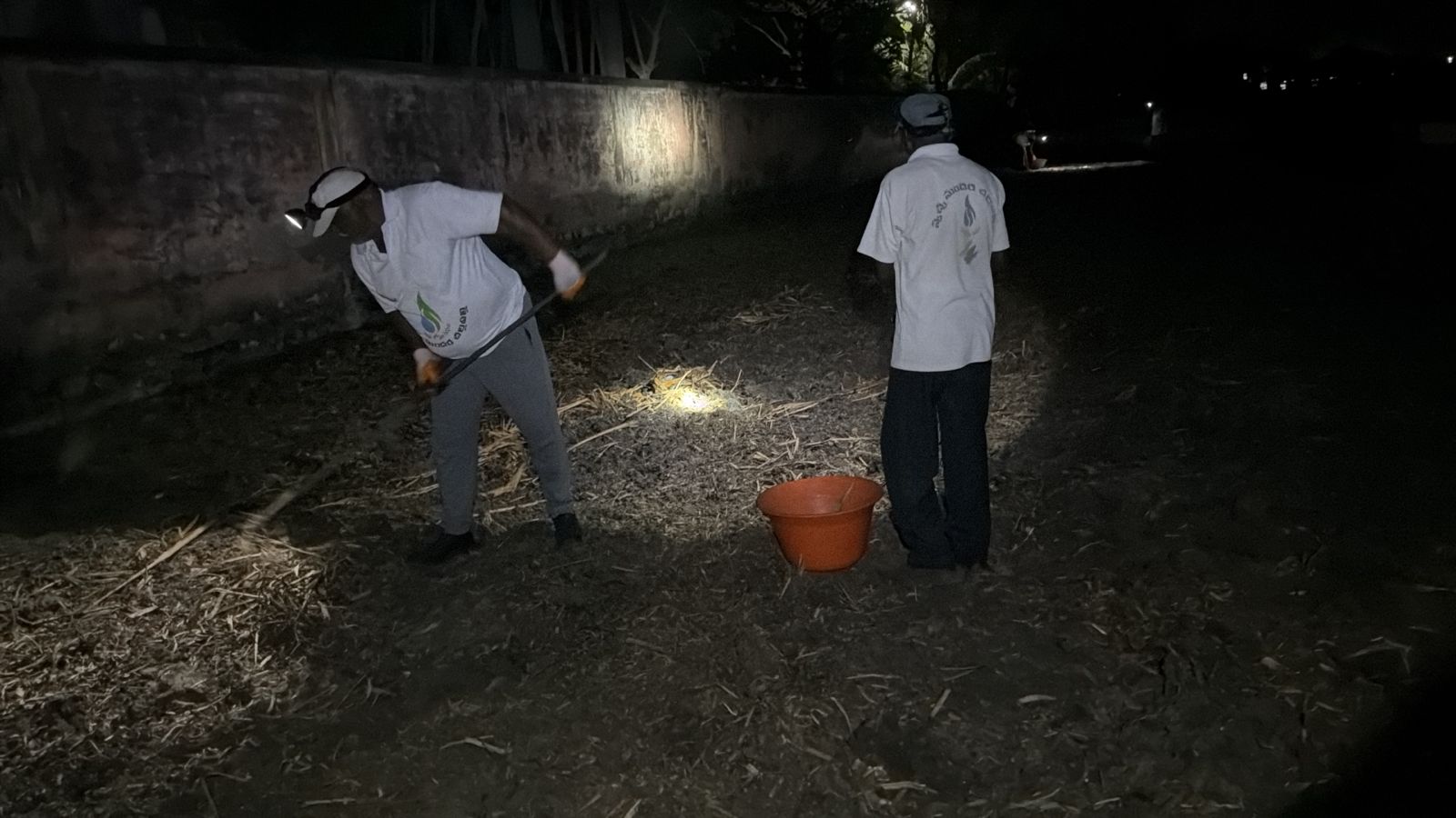 ఆ పండుగ జరిపిన వారు ఈ బుధవారం (29-4-26) వేకువ 4.20 కి 12 మందీ, 4.45 కు పదిమందీ, మిగిలినవారు మరో అడుగు లేటుగానూ! శ్రమ జరిగినది బైపాస్ వీధిలోని పాలకేంద్రం ప్రక్కనున్న 5 ఎకరాల ప్రభుత్వ స్థలంలో. అచ్చటనే ఎందుకంటే - సజ్జా చలపతి అనే చల్లపల్లి ప్రముఖుడు అందులో ఈ ప్రాంత యువతీ యువకులకు క్రికెట్, షటిల్, వాలీబాల్ వంటి ఆటల కోసం స్టేడియం నిర్మించబూనుకోవడం!
