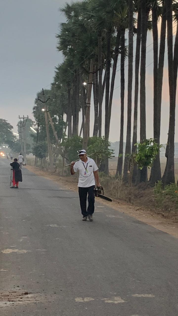 పచ్చని చెట్లతో సుందర శోభాయమానంగా ఉన్న ఆ రహదారికి మరింత మెరుగులు దిద్దుతూ దారికి రెండు ప్రక్కలా చెట్ల మధ్య ఉన్న కలుపును కొందరు మట్టుపెట్టగా మరికొందరు స్వచ్ఛ సుగంధాలు భరించలేని స్వచ్ఛ స్ఫూర్తికి దూరంగా జరిగే బాటసారులు డ్రైన్ అంచున పారవేసిన ప్లాస్టిక్ వ్యర్ధాలు పైకి లాగి డ్రైనేజి వరకు పరిశుభ్రం చేసే పనిలో నిమగ్నమవగా ఒక దళం ప్రత్యేకంగా రోడ్ల మీదకి రాబోయే చెట్ల కొమ్మలను యంత్రంతో కత్తిరించి చెట్ల యొక్క రూపాల్ని కూడ ఎంతో అందంగా ఉండేట్లు సరిచెయ్యడం స్వచ్ఛ సైనికులకే చెల్లు.