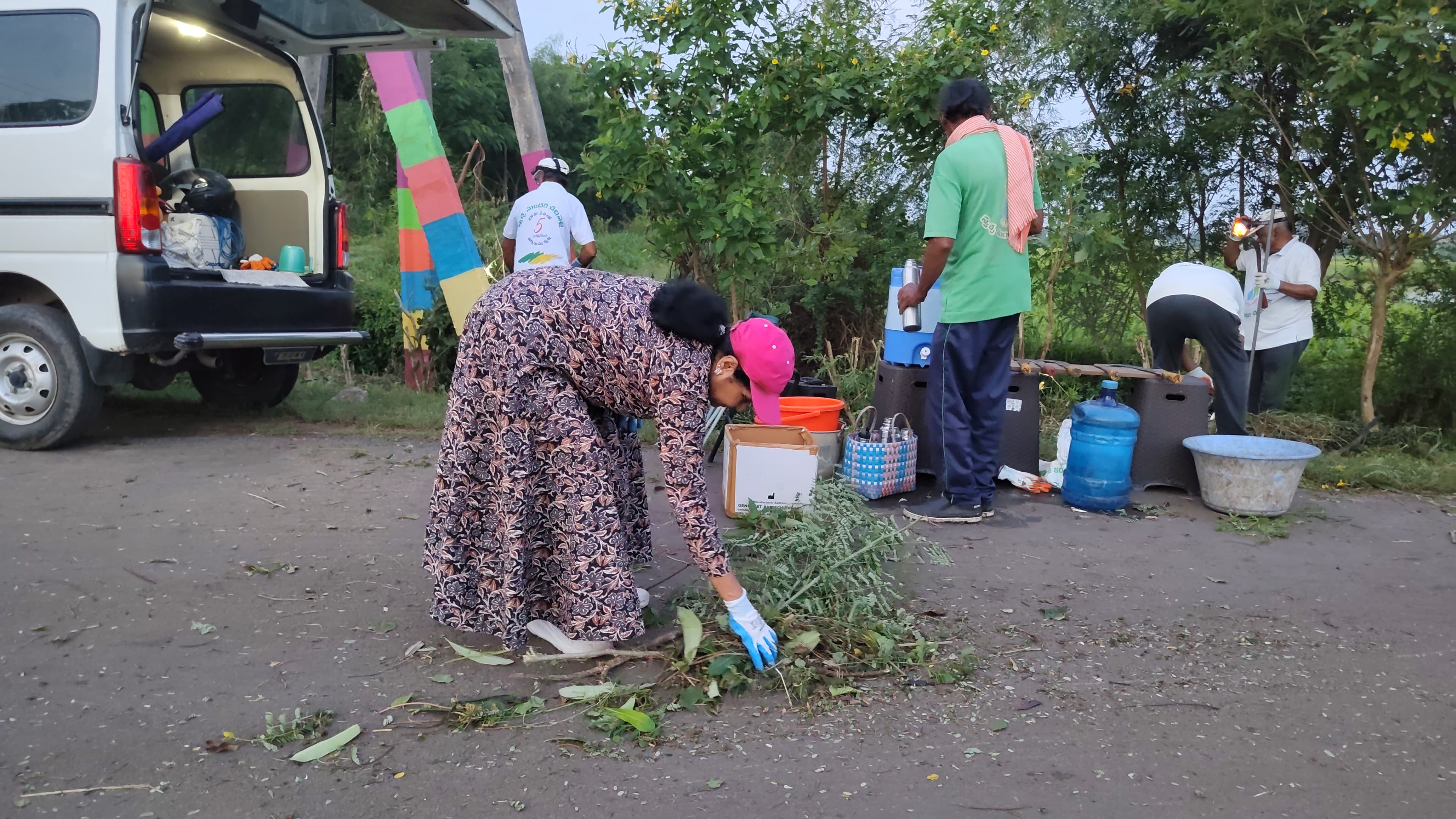 తెల్లవారుజాము 4:16 నిమిషాలకు గంగులవారిపాలెం రహదారి మలుపులో 9 మంది కార్యకర్తలు పని ప్రాంభించారు. ఆదారి ప్రక్కన కార్యకర్తలు గతంలో నాటిన మొక్కలు, గద్దగోరు, పొగడ, సువర్ణ గన్నేరు మొక్కలకు బాగా పిచ్చికాడ అల్లుకుని ఊపిరాడకుండా కమ్మేసింది. ఆ పిచ్చి తీగ లాగి మొక్కలకు స్వేచ్చా వాయువులు ప్రసాదించే పనిలో కార్యకర్తలు తలమునకలయినారు. మిషన్ తో గద్దగోరు మొక్కలను ఒక ఎత్తుకు కత్తిరించుకొంటూ ఖాళీ చేసుకుంటూ మిగతా మొక్కలను బయటకు తీశారు.