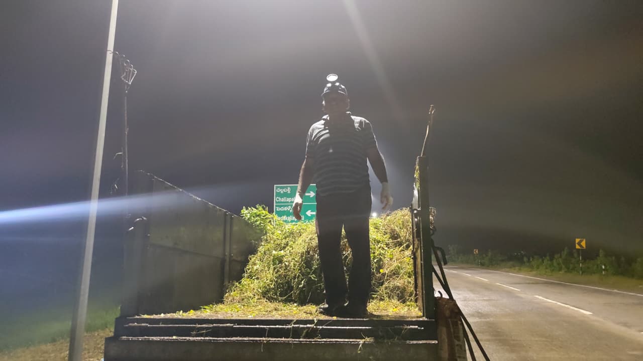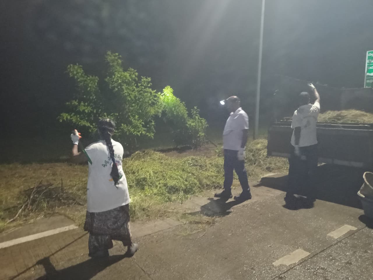 హైవేకు రెండవ ప్రక్కన ఉన్న పారిజాతం మొక్కల చుట్టూ గడ్డి ఏపుగా పెరిగి మొక్కల చుట్టూ పిచ్చి కాడ అల్లుకుని మొక్కల పెరుగుదలకు ఆటంకంగా ఉన్న కలుపును తీసివేసి శుభ్రపరిచారు.