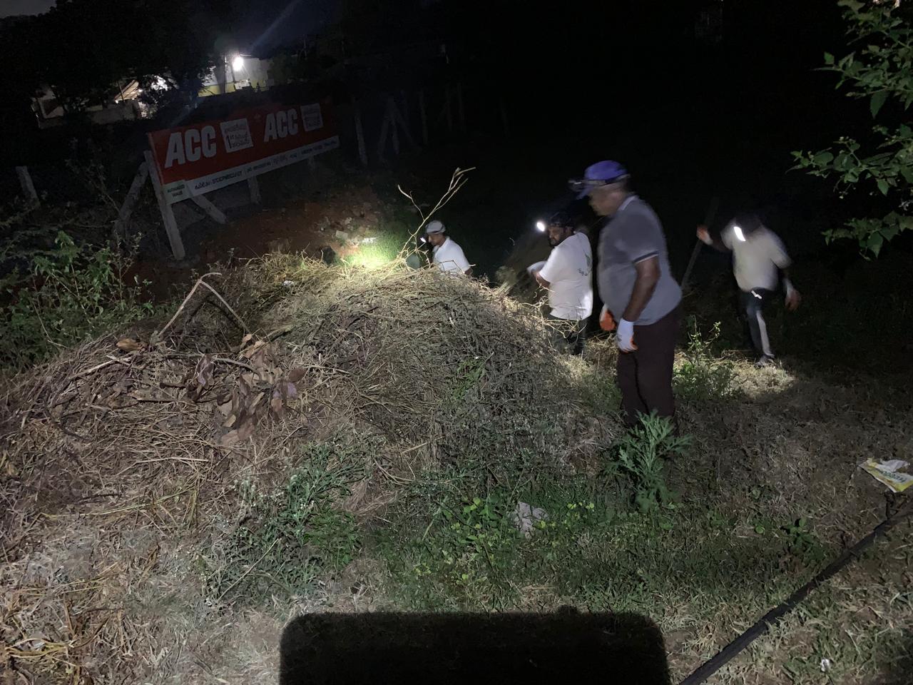 6 గం.ల వరకు శ్రమించిన 18 మంది కార్యకర్తలు విజిల్ మ్రోగగానే  పనికి విరామమిచ్చి కాఫీ సేవించిన పిదప సమీక్షలో పాల్గొని,
