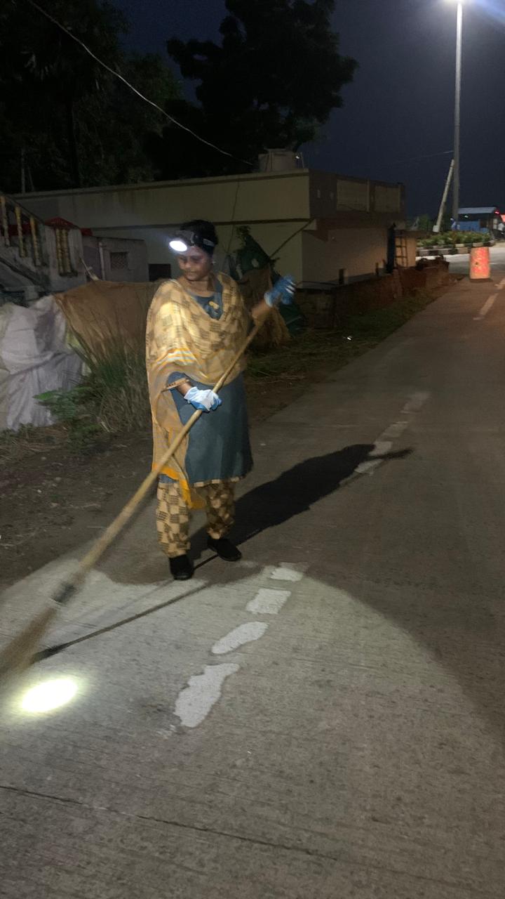 మరికొద్ది మంది కార్యకర్తలు రహదారి దిగువ భాగంలో మొక్కల మధ్యలో ఉన్న గడ్డిని, పిచ్చి మొక్కలను తొలగించారు. మొక్కలు గాలికి వంగిపోయి పడిపోకుండా కర్రలు పాతడం చేశారు.