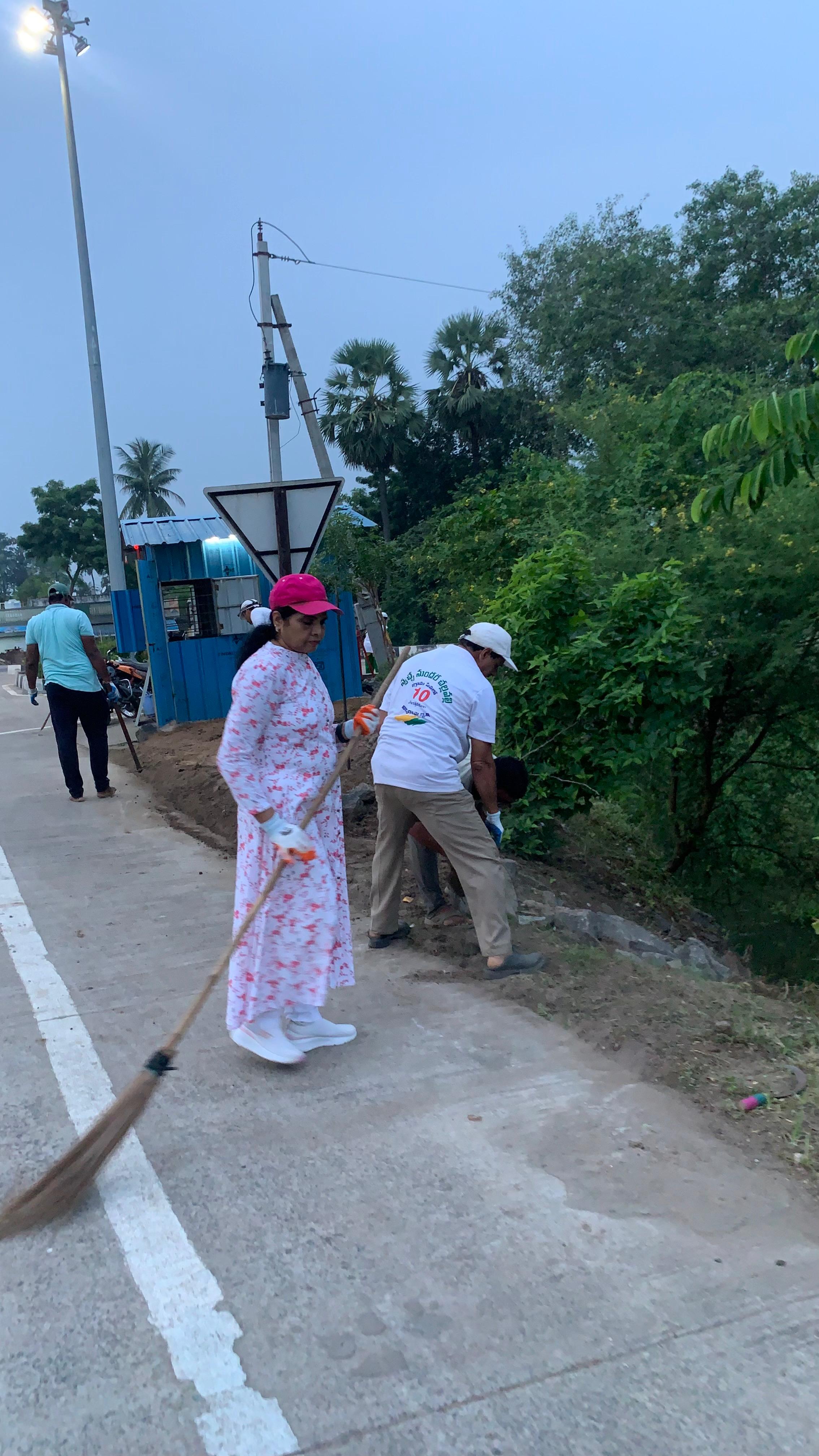 కొంతమంది కార్యకర్తలు అక్కడక్కడా వంగిపోయిన నేరేడు, అలస్తేనియా మొక్కలను సరిచేసి కట్టారు. వాలిపోయిన అడ్డుగా ఉన్న అలస్తేనియా కొమ్మలను కొట్టడం జరిగింది. సచివాలయం సిబ్బంది కూడా ఈరోజు కార్యక్రమంలో పాల్గొని చీపుళ్ళతో శుభ్రం చేశారు.