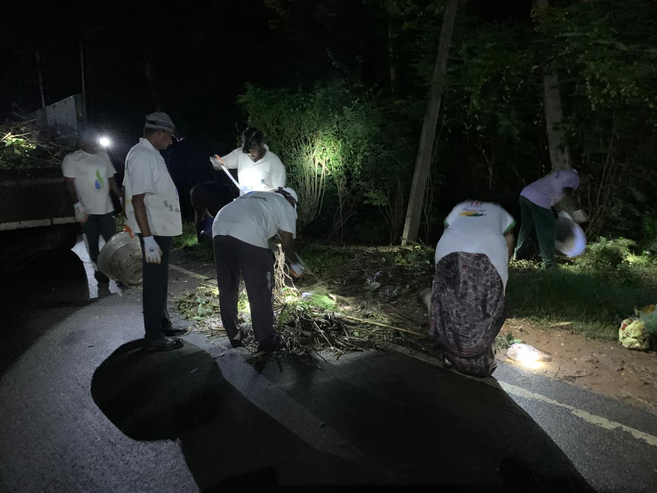 అనంతరం వెనుక మరో ముగ్గురు మహిళా కార్యకర్తలు ఊడ్చి రహదారినంతా శుభ్ర పరిచారు. మరొక కార్యకర్త మిషన్ రంపంతో గడ్డి ని కట్ చేయగా రోడ్ మార్జిన్ ఎంతో సుందరంగా ఉన్నది. మరికొంతమంది కార్యకర్తలు రోడ్డు కుడి ఎడమల దిగువ భాగంలో ఉన్న కలుపు, గడ్డిని, వంకరగా పెరిగిన అడవి తంగేడు కొమ్మలను కత్తిరిస్తూ బాగు చేశారు.