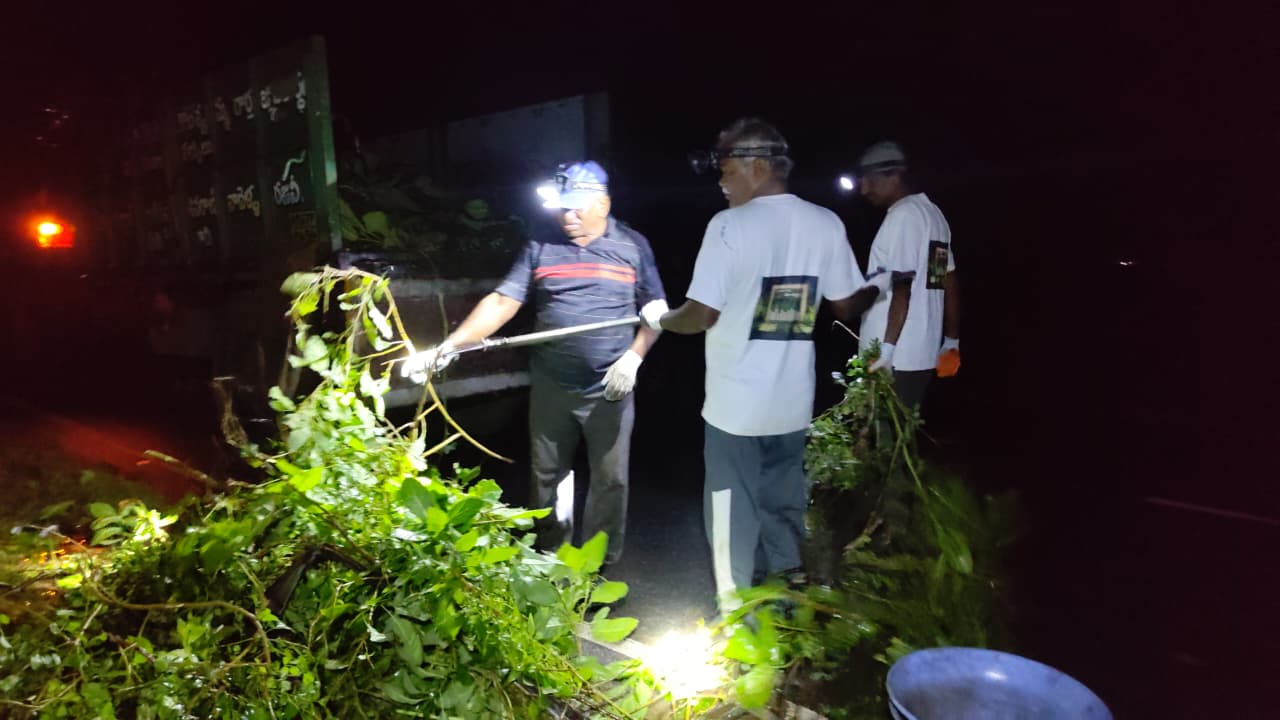 నిన్న పని చేయగా వచ్చిన కొమ్మలు, చెత్త, గడ్డి మొదలగునవి నలుగురు కార్యకర్తలు ట్రాక్టర్ లో లోడ్ చేస్తుండగా మరి కొంతమంది రైస్ మిల్ పొడవునా ఉన్న గార్డెన్ లో నుంచి చెట్లు, కంప బయటకు వచ్చి మెస్ వెలుపల అందవిహీనంగా ఉండటంతో వరుసలో అక్కడ కార్యకర్తలు కొమ్మలు కొట్టడం, బోగన్ విలియా కంపను కత్తిరించడం, గార్డెన్ వెలుపల క్రింది భాగంలో ప్రాకిన దొండ కాడ అంతా కత్తులతో కోసి ఎంతో పరిశుభ్రంగా చేశారు.