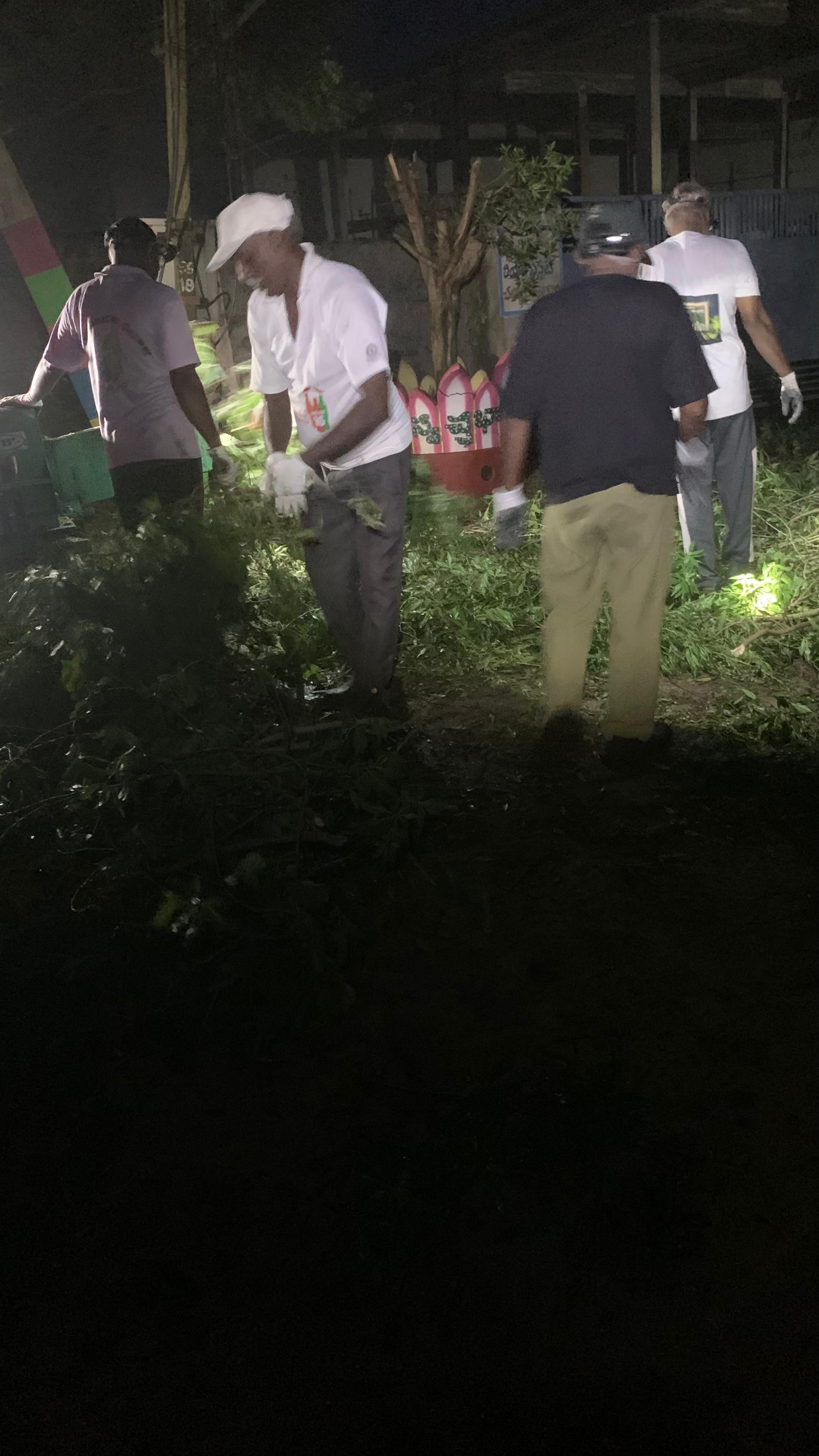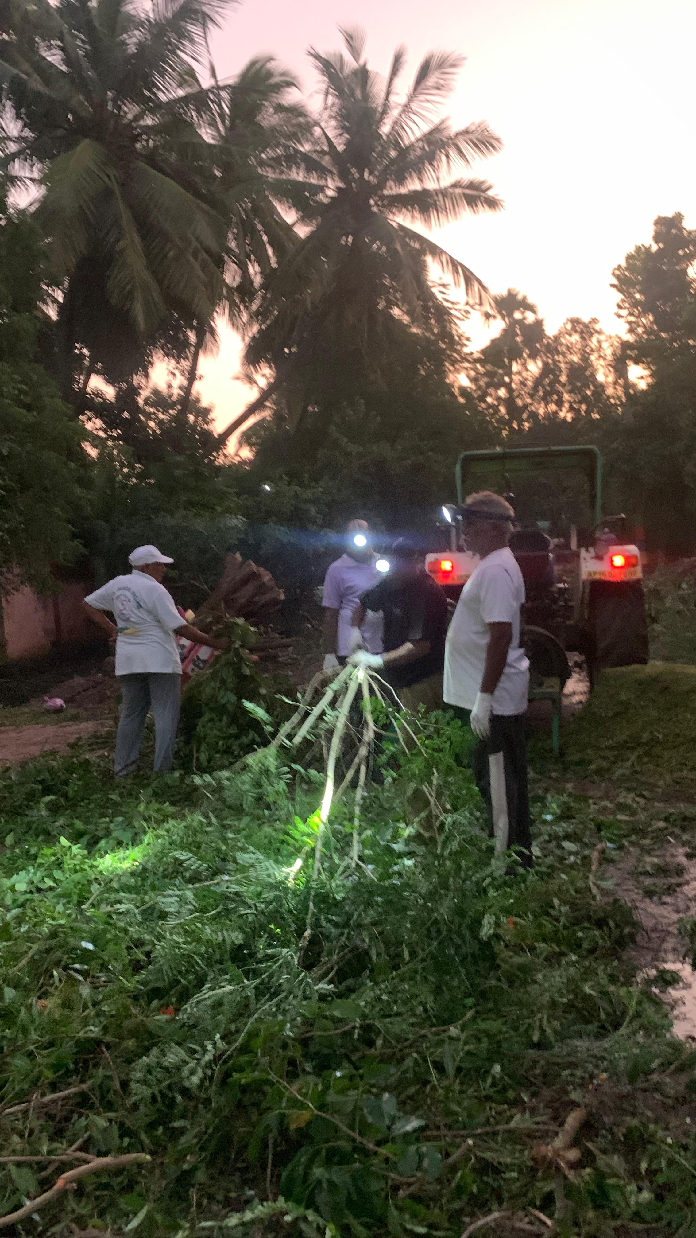 తుఫాను ప్రభావంతో 28 వ తేదీ సాయంత్రం నేలకొరిగిన చెట్లను అప్పుడు వర్షంలో తడుస్తూ ప్రక్కకు తొలగించి రహదారి సౌకర్యం కల్పించారు. కానీ అవి దాదాపు 4 ట్రక్కుల కొమ్మలు, ఆకులను డంపింగ్ యార్డ్ కు తరలిస్తే అక్కడ ఖాళీ ఆక్రమించడం తప్ప, తగలేస్తే కాలుష్యం ముప్పు వీటన్నింటికీ పరిష్కారంగా షడ్దర్ మిషన్ లో వేసి ఆకులు కొమ్మలను పొడి చెయ్యడం, మొద్దులను ఇతర అవసరాలకు కర్రలను మొక్కలకు దన్నుగా వాడడం ఇదీ రధసారది గారు కార్యకర్తలకు చెప్పిన ప్రత్యామ్నాయ పద్ధతి.