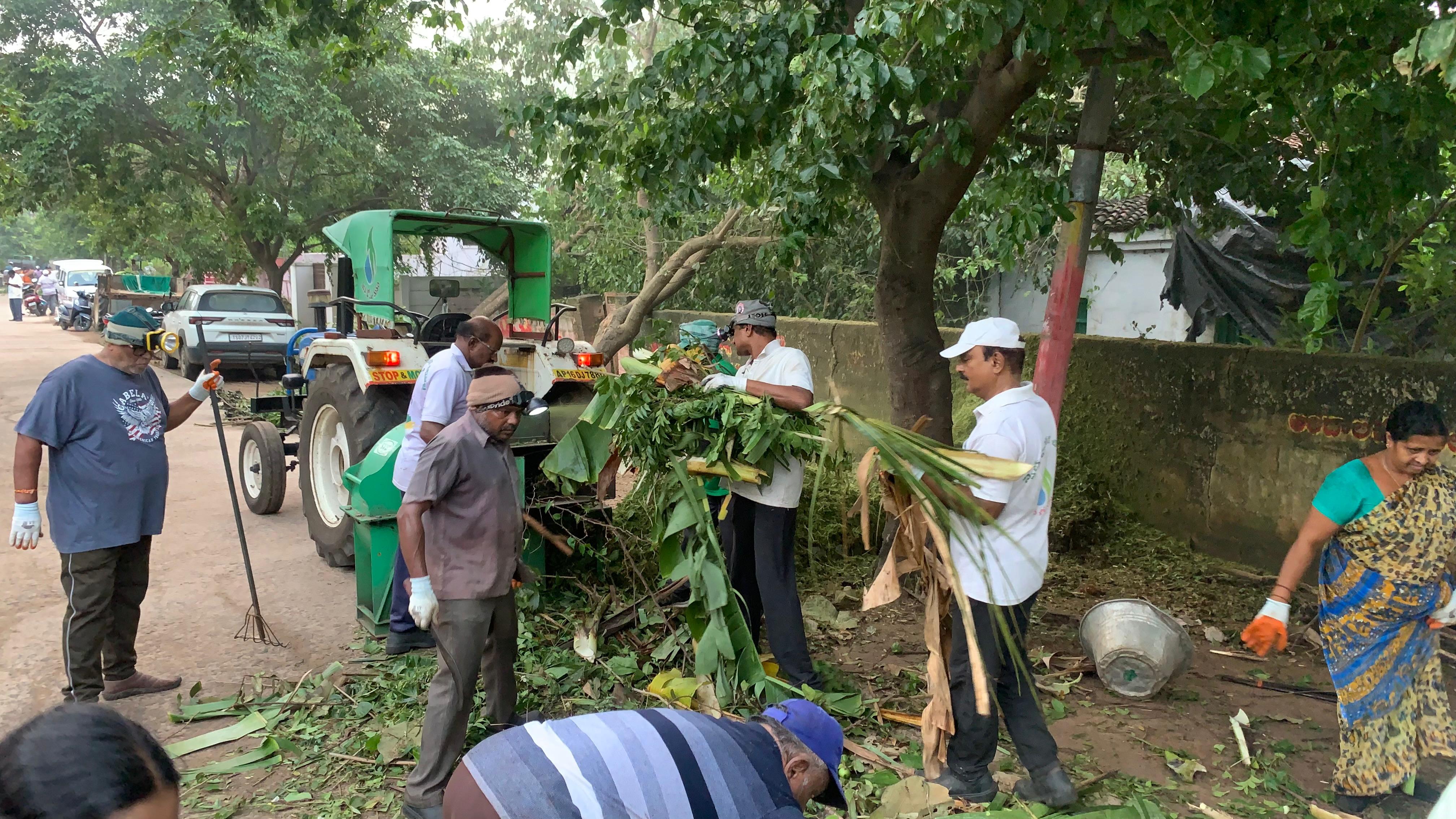 ఒక బజారులో షుమారు 50 కుటుంబాల పరిధిలో ఆ దారిలోఉన్న చెట్ల కొమ్మలు, అందరూ రోడ్డుపై పడవేసిన చెట్ల కొమ్మలు, ఆకులు, గార్డెన్ వ్యర్థాలను డంపింగ్ యార్డుకు చేర్చి అక్కడ కాలుష్య కాసారంగా మార్చకుండా ఉండాలంటే ఉదయం 2 గంటల పాటు 40 మంది కార్యకర్తలు రెక్కల కష్టంతో నిబద్ధతగా పని చేస్తేనే సాధ్యమయింది.