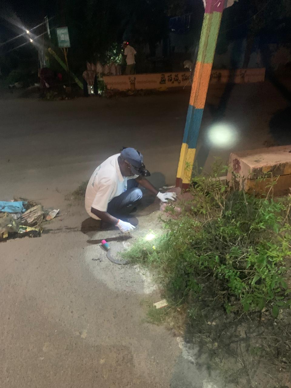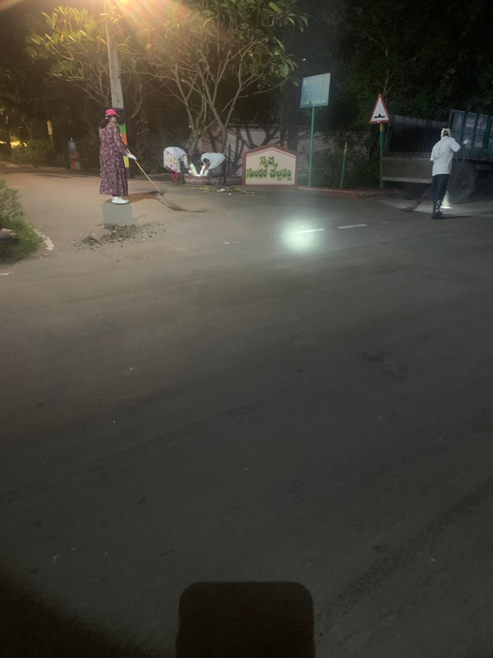 ఈ రోజు బందరు రోడ్ లోని SBI దగ్గర తెల్లవారుజాము 4:18 నిమిషాల కల్లా స్వచ్ఛ కార్యకర్తలు చేరుకోగా, గత కొన్ని నెలలుగా వర్షాకాలం అగుట చేత మెయిన్ రోడ్ లోని దుమ్ము చీపుళ్ళతో శుభ్రం చేయడానికి వీలుకాని పరిస్థితి, రహదారిపై రెండు ప్రక్కలా సగభాగం దుమ్ము మందంగా పట్టి ఉంది.