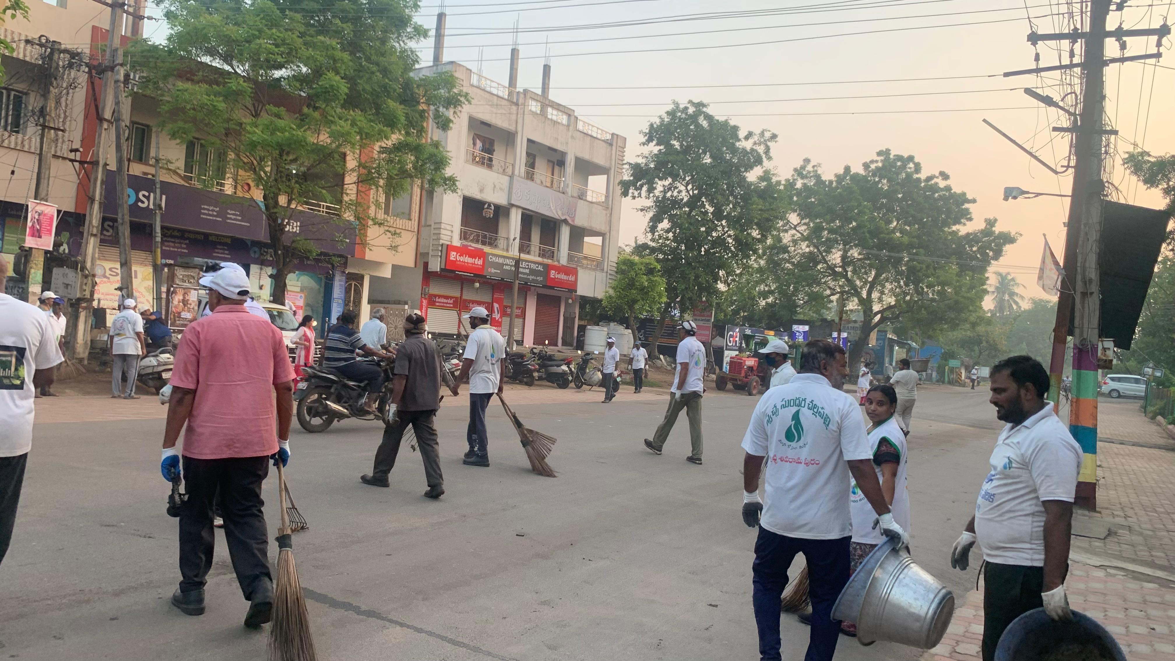 గస్తీ గది వద్ద నుండి మొదలుకొని బందరు రోడ్ పొడవునా రోడ్లపై సగభాగం నిండిన దుమ్ము, రెండు ప్రక్కలా మార్జిన్ లో వేసే చెత్త వివిధ రకాలైన వ్యాపారాలు చేసే షాపుల వారి వ్యర్ధాలు వీటన్నింటినీ శుభ్రం చేసే ప్రక్షాళన కార్యక్రమంలో భాగంగా ఈరోజు ఎక్కువమంది కార్యకర్తలు ఆదివారం వారివారి పనులను సైతం ప్రక్కన బెట్టి పాల్గొన్నారు.