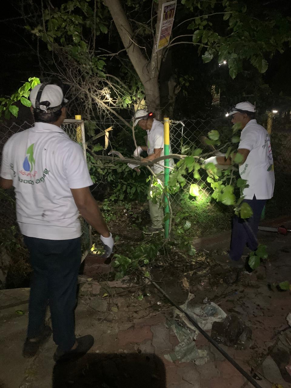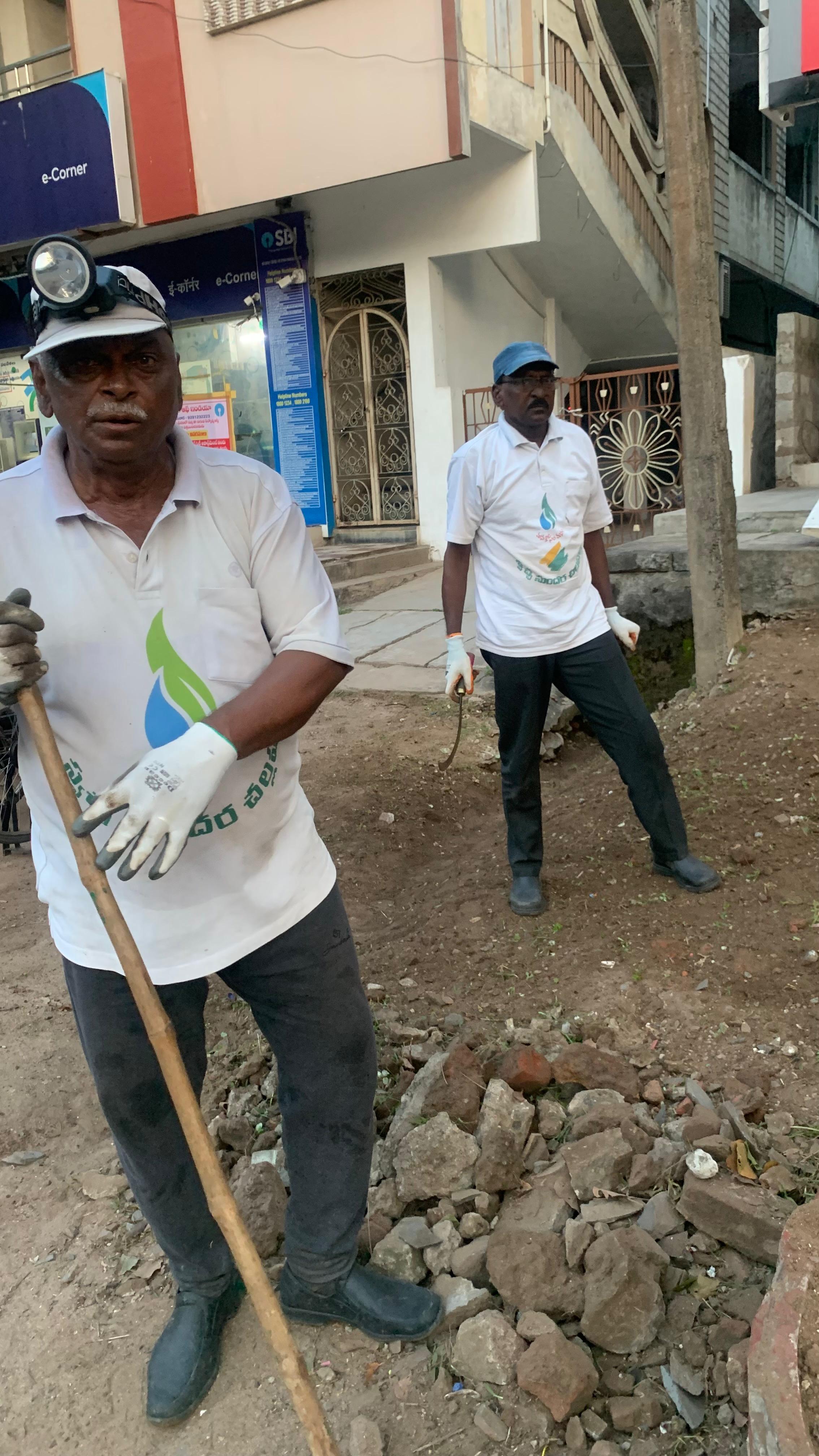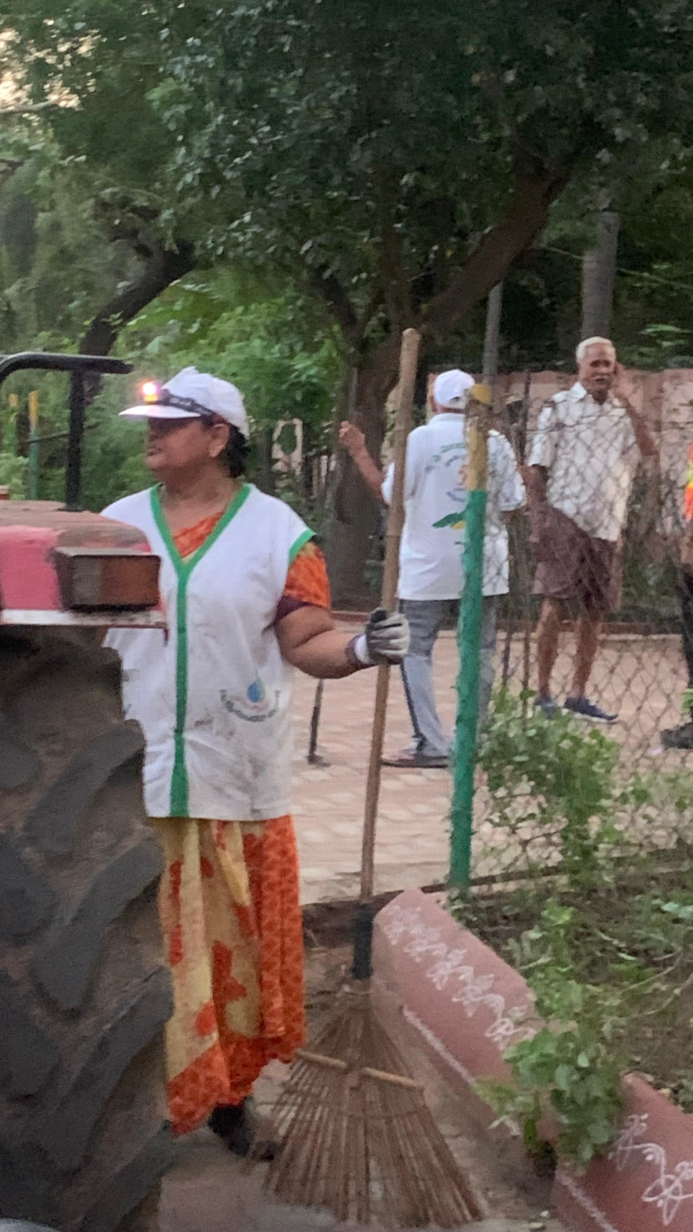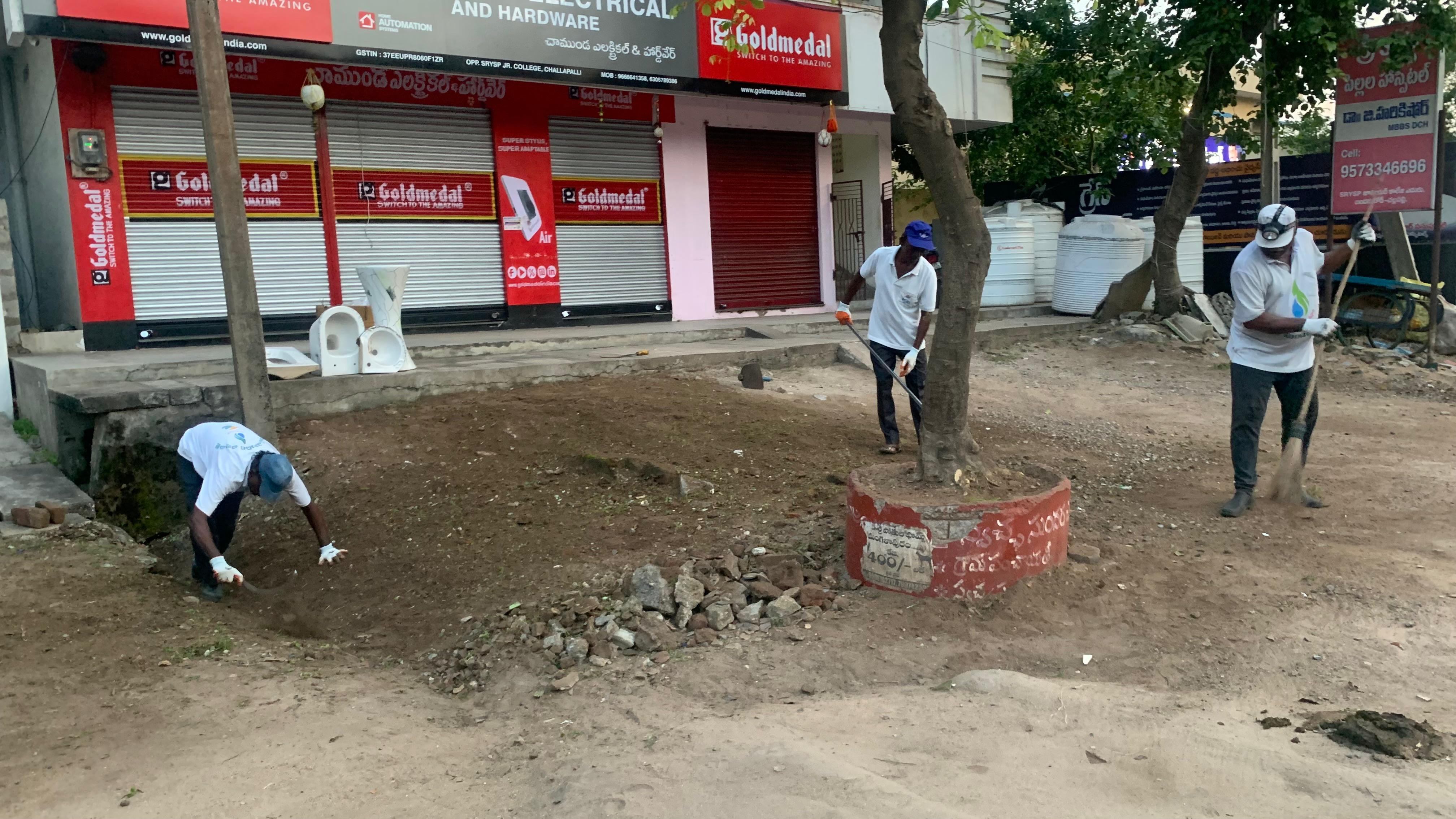 కొందరు రహదారి పొడవునా దుమ్ము చీపుళ్ళతో శుభ్రం చేస్తుండగా కొంతమంది తుక్కును ట్రాక్టర్ లో లోడ్ చేశారు. దుమ్ము ధూళిని రోడ్డు ప్రక్కన గుంతలలో వేశారు.