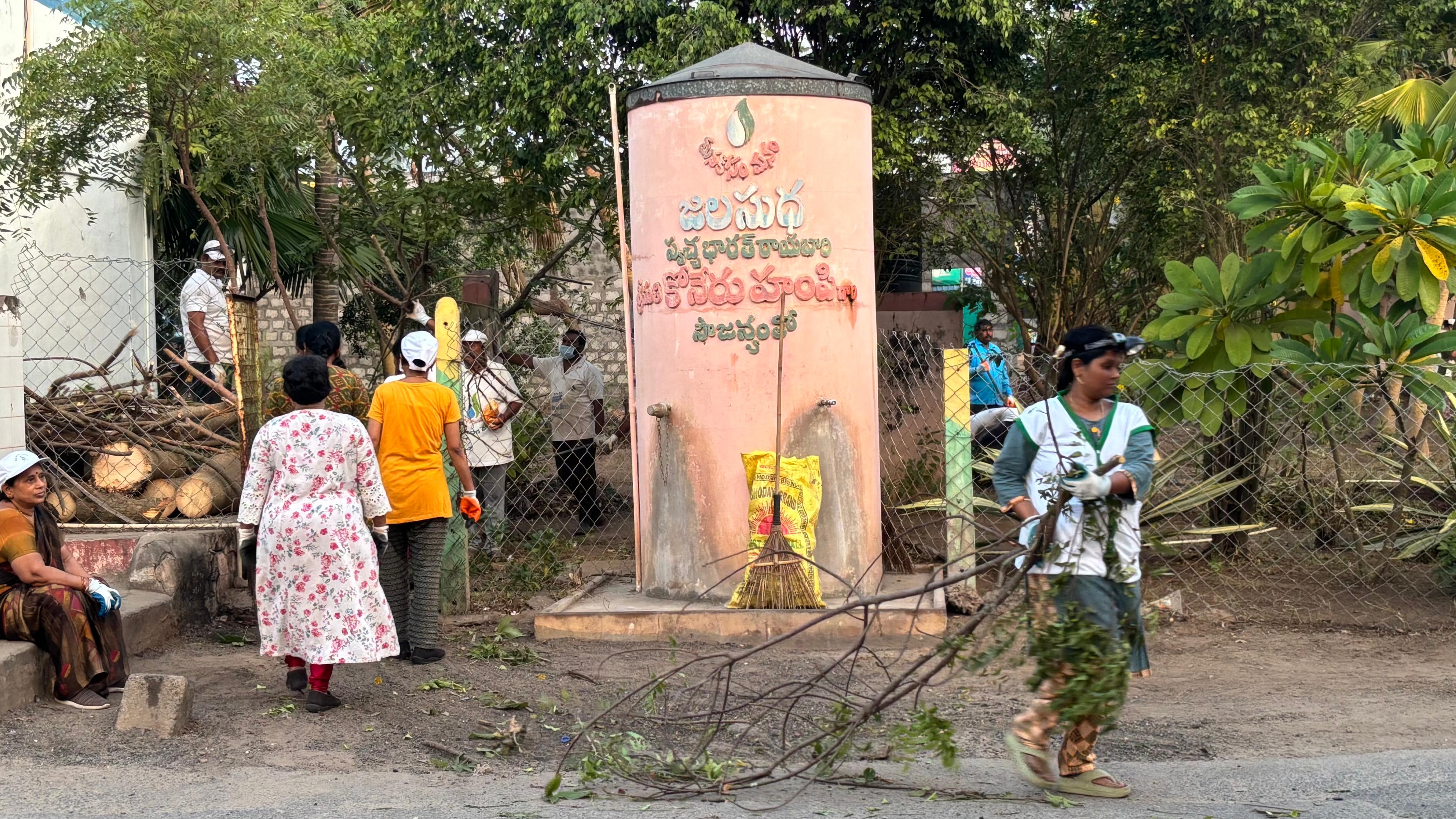 మంది పట్టి పట్టి శుభ్రపరచిన ప్రస్తావనార్హ శ్రమ! అందులో సగం మంది వంచిన నడుములెత్తనే లేదు! గంటల తరబడీ పని చేసిన ఈ ముఠా అద్దంలా ఉన్న ఆ 2 సెంట్లలో నిలబడి ఫొటో దిగడమంటే – తమ సంతృప్తిని రోజంతా నిలుపుకోవడమన్నమాట!