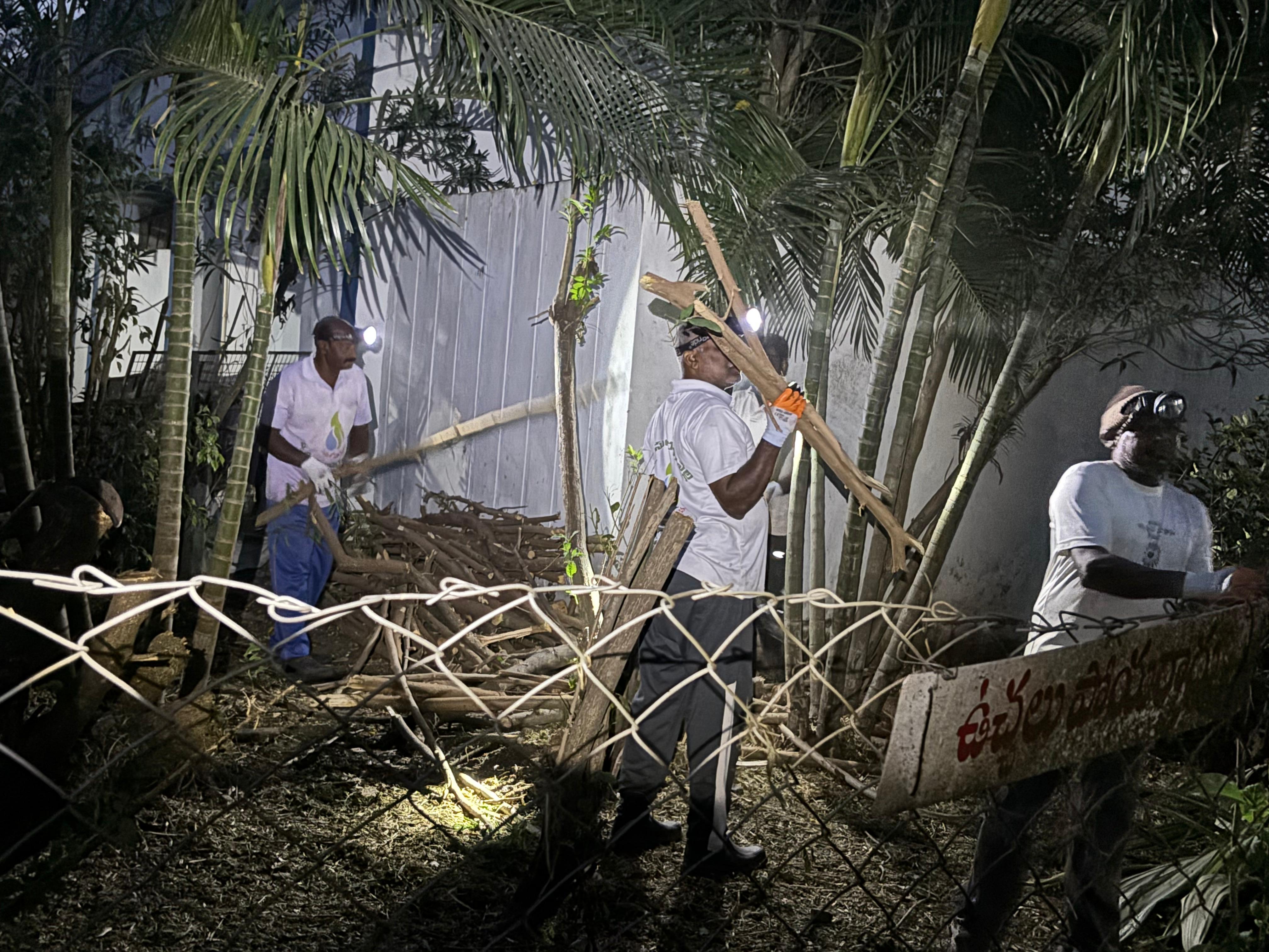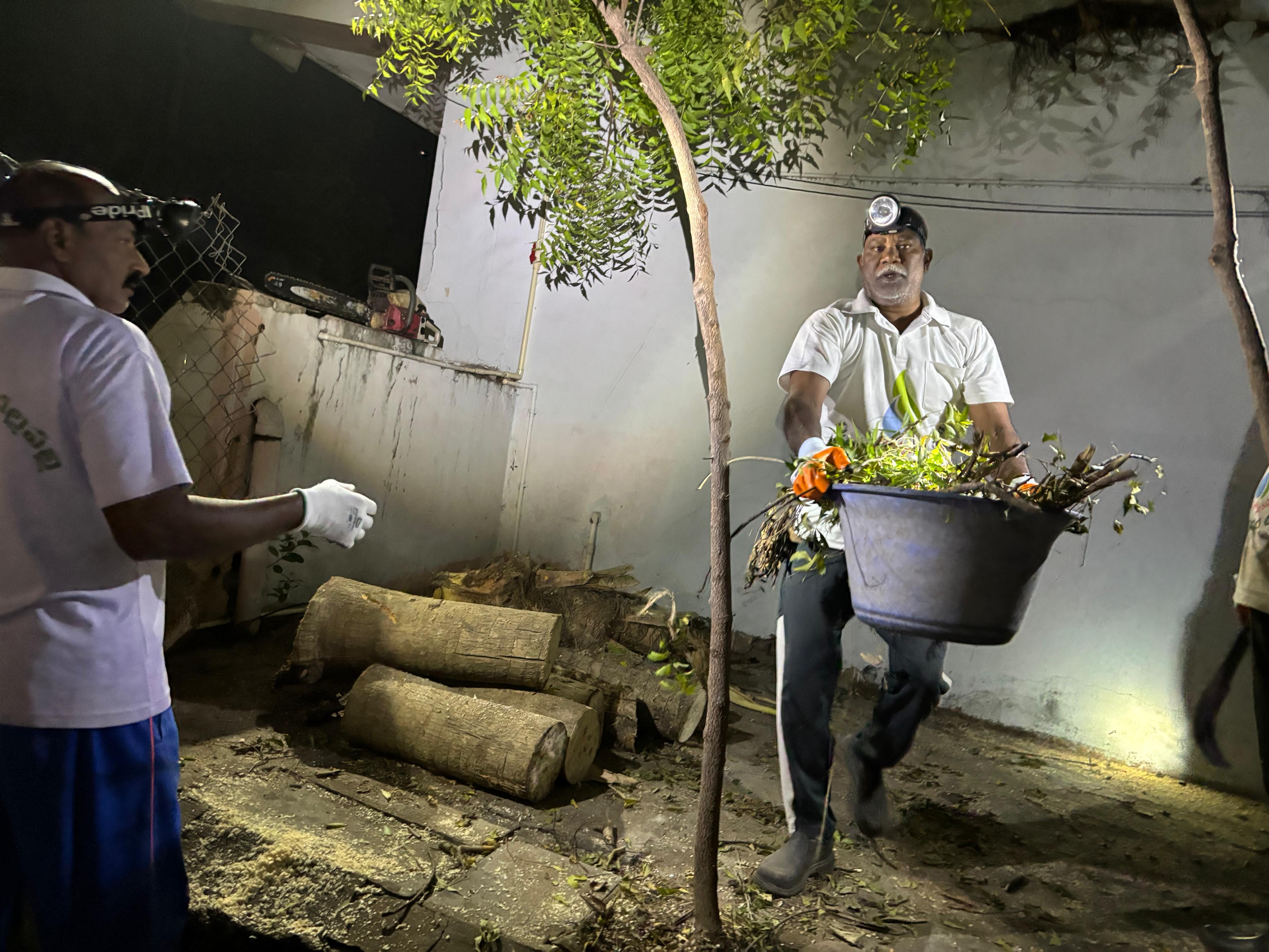 కార్యకర్తల సంఖ్య కాస్త పెరిగినందునా, ఉత్సాహం ఇనుమడించడం చేతా, వెలుపలి వీధి సైతం ఎంత శుభ్ర సుందరంగా మారిందో తప్పక పరిశీలించండి; అలాగే గంటన్నరపాటు కూలిన - కూల్చిన వృక్షాల్ని కోయడానికి మర రంపం మ్రోతనూ వినండి; ఏడెనిమిది మంది రెస్క్యూ టీమ్ ఆ కొమ్మల ముక్కల్ని ట్రాక్టర్ లో పేర్చడాన్ని చూడండి.