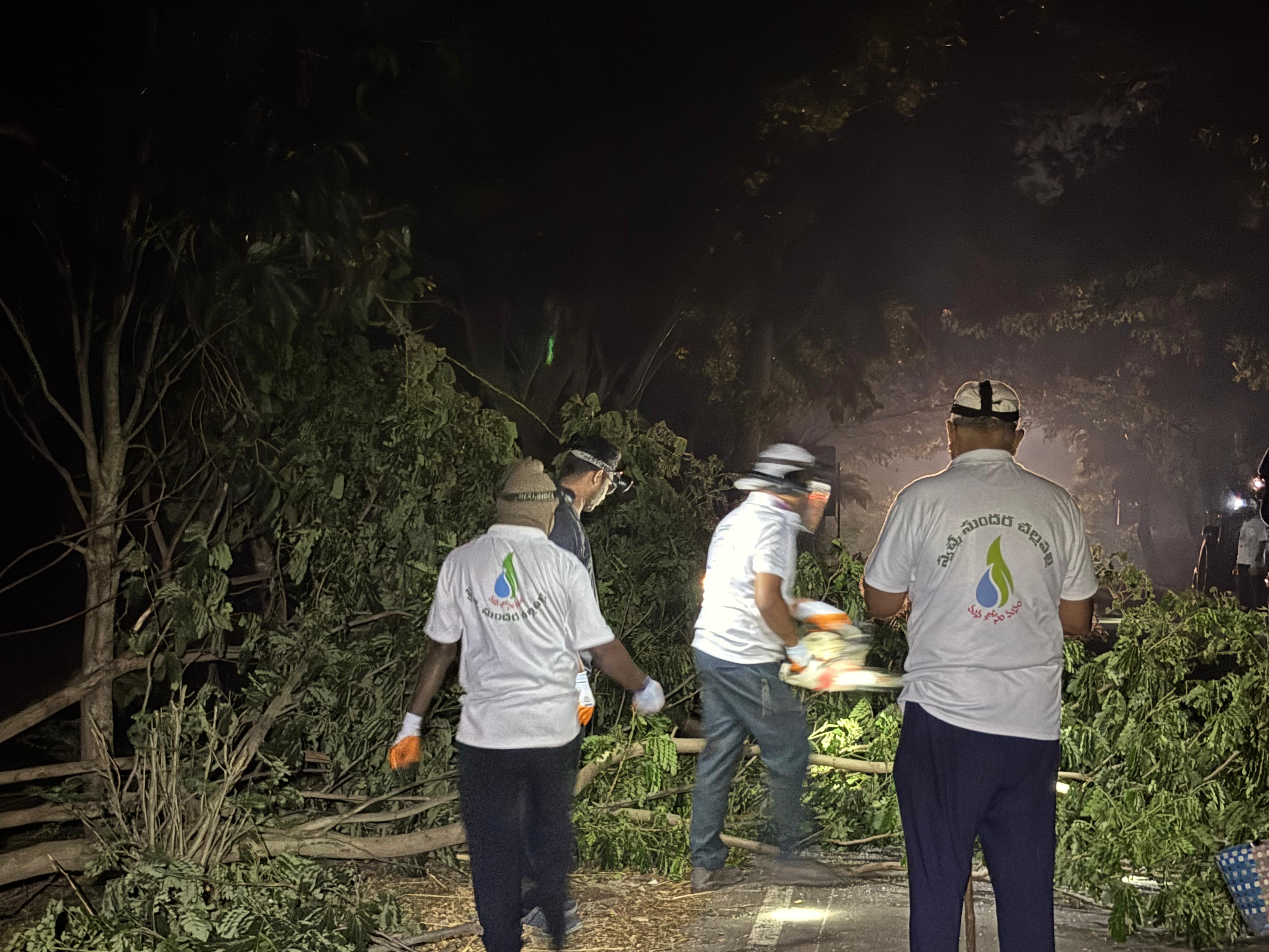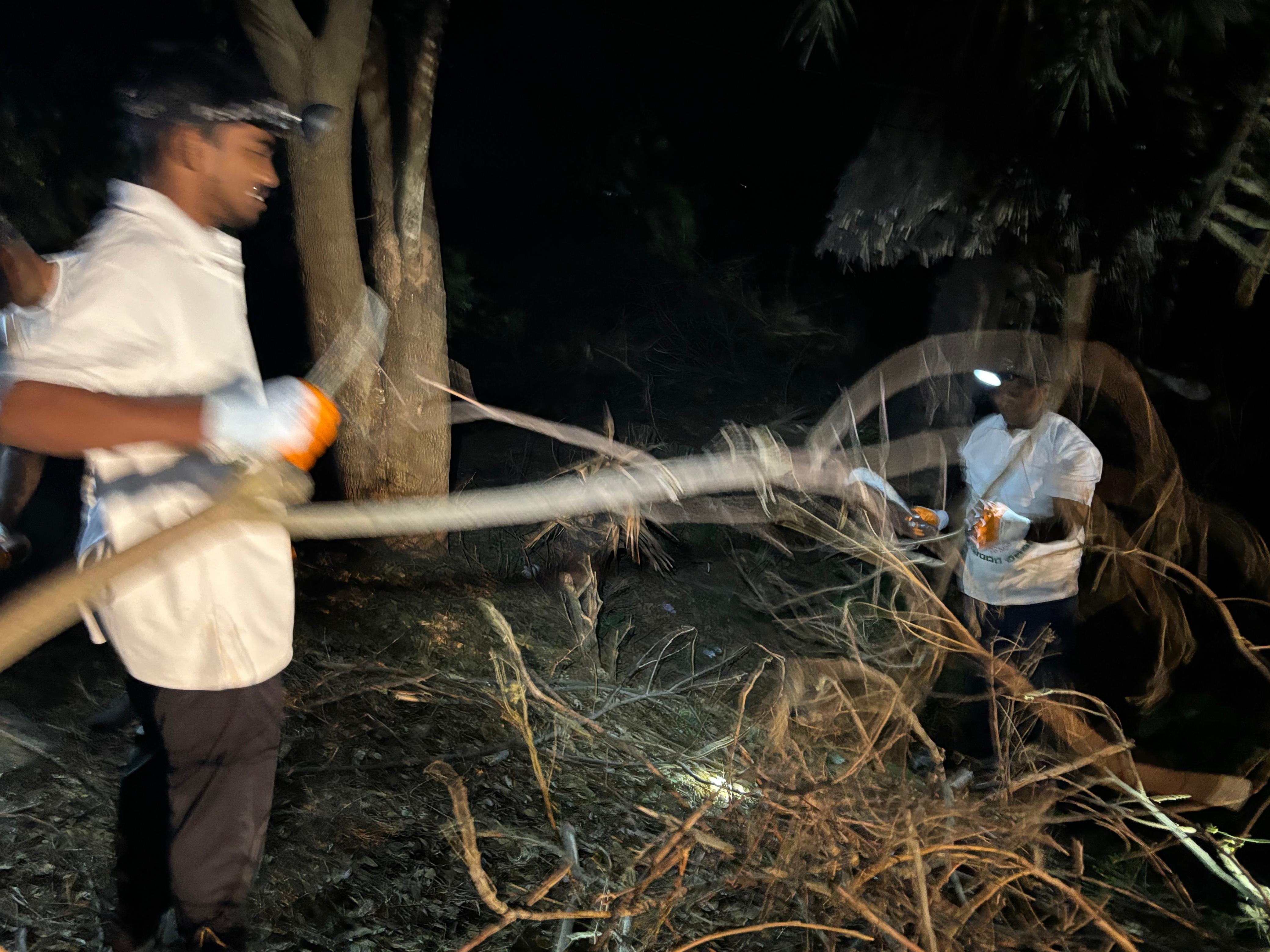 - విరిగి డ్రైన్ నీటిలో పడినానుతున్న బరువైన కొమ్మల్ని బైటకు లాగారు,