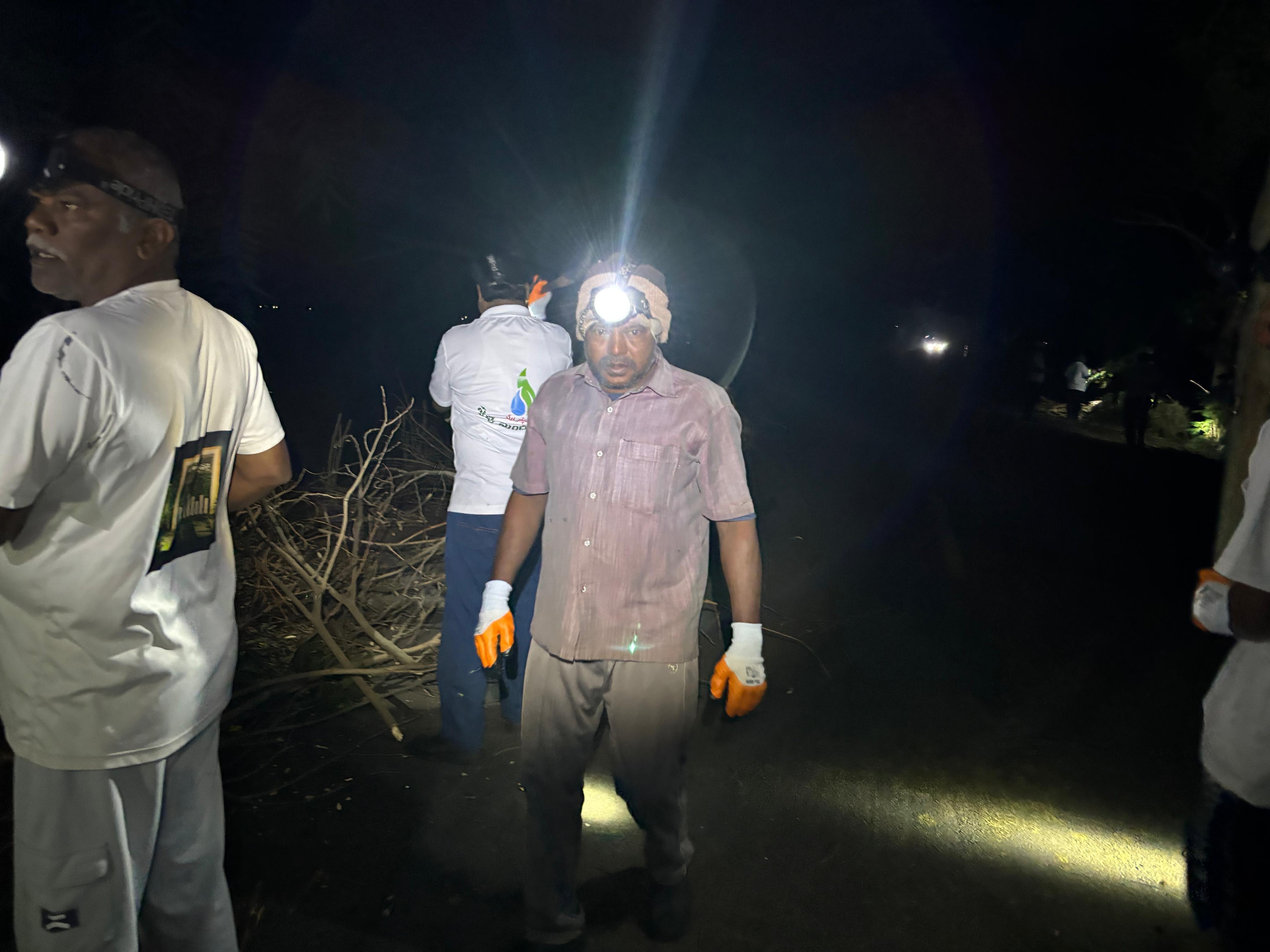ఆ దారి నాగాయలంక దిశగా కాసానగర్ వద్ద; శ్రమ 25 మంది సామాజిక బాధ్యులది; వాళ్లకది మూడేసి కిలోమీటర్ల దూరానిది; ఆ బాట భాగమేమో విద్యుద్దీపాలు వెలగనిది; వాతావరణమేమో కడు శీతలమైనది; తొలుత అతిశీతల గాలులే గాని, క్రమంగా చిరుజల్లులుగా మారినది.