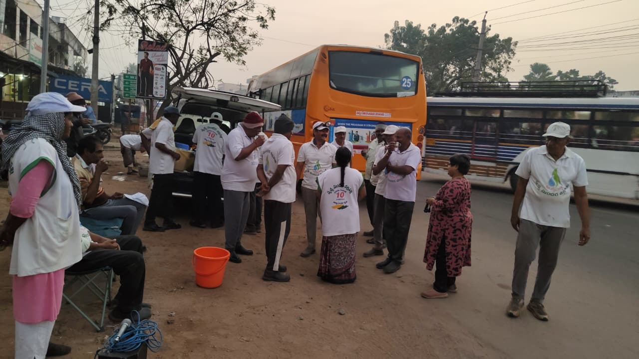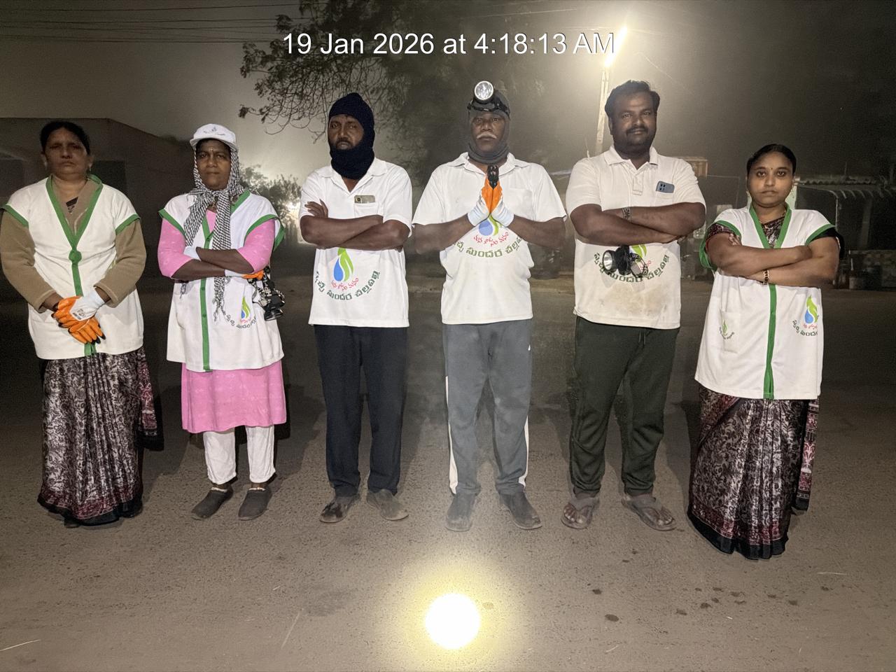 ఈ వేకువ 4.18-6.17 నడుమ RTC. సంస్థ ప్రాంగణ ప్రాంతమున వీధి శుభ్ర - సందర్భములకై శ్రమించిన కార్యకర్తలైతే 23 మందే. బస్ స్టాండు ప్రవేశమార్గంలో ఒక్క చీపురు వాలా కొంతసేపు ఊడ్చాడు గాని, మిగిలిన అందరికీ అటు నుండి పడమర అవనిగడ్డ బాటలోనే సరిపోయింది.